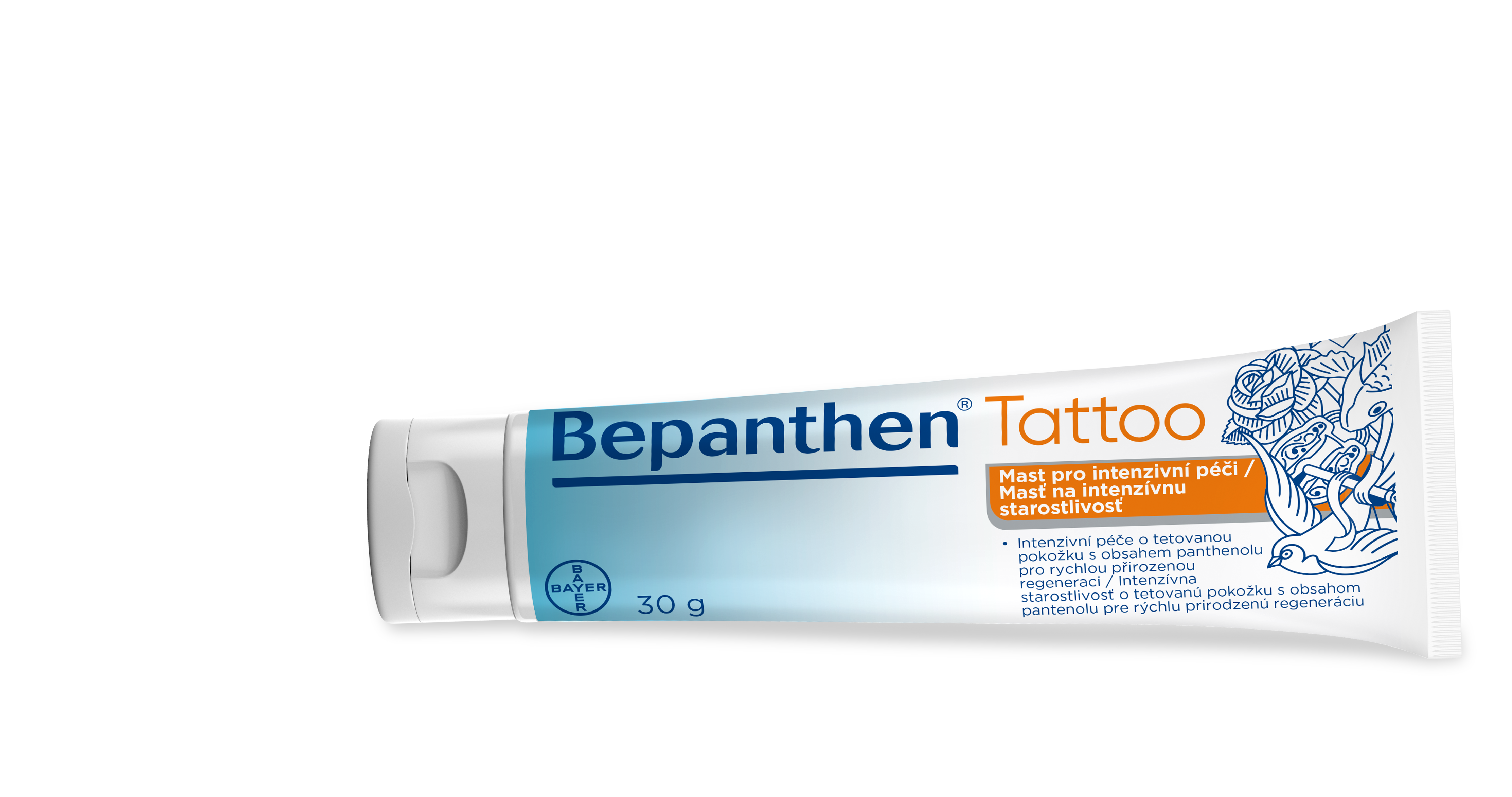 Pro zdravě vypadající tetování nanášejte 4x denně Bepanthen Tattoo mast na omytou tetovanou pokožku v tenké vrstvě po dobu, jakou je třeba. Nepřestávejte ani poté, co se strupy sloupnou. Mast vytvoří ochrannou transparentní vrstvu, nezanechává silný bílý film a nemusí se smývat. Vyvinuto speciálně pro vaše tetování.