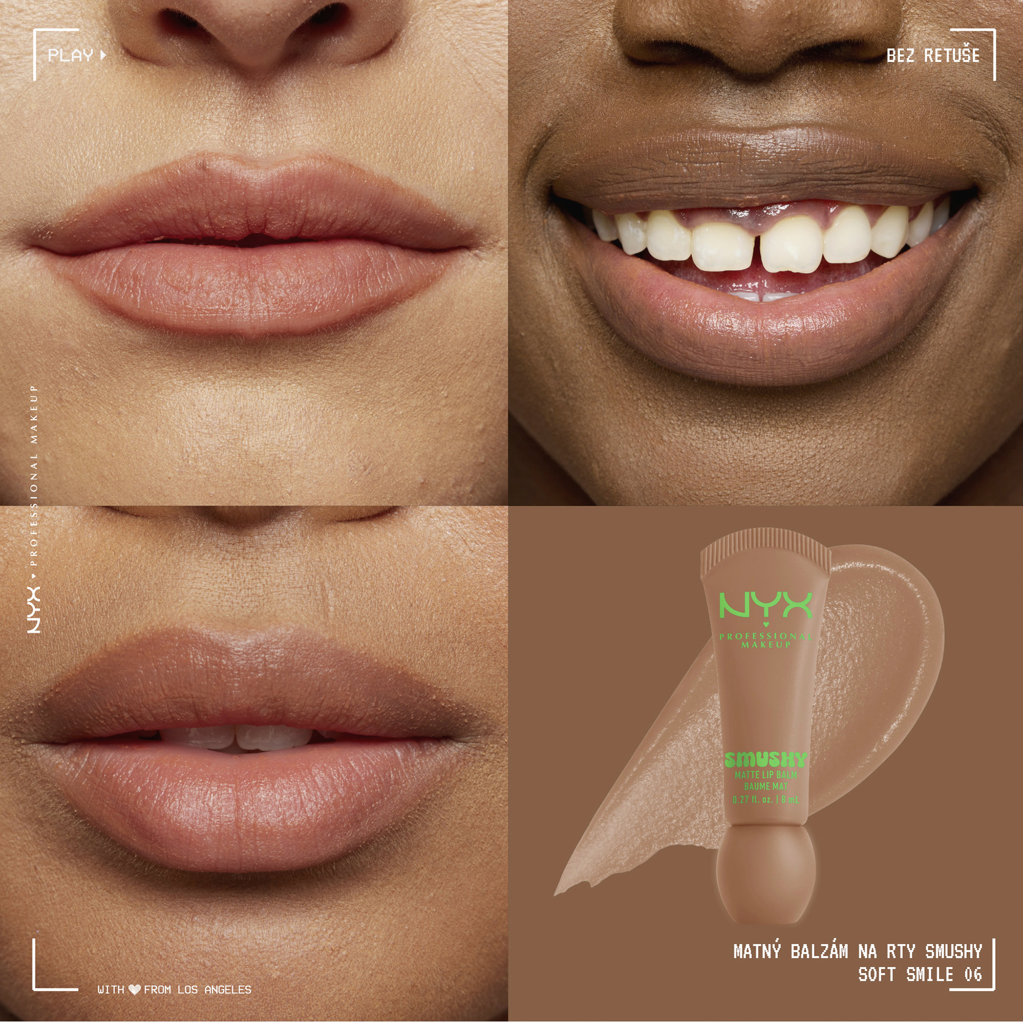 Mlask! Pusa! Seznamte se s NOVÝM matným balzámem na rty Smushy Matte Lip Balm! Tato veganská receptura na rty je vaší vstupenkou k obláčkově hebkým rtům s jemným matným finišem. Lehká receptura s rýžovým práškem mochi a cukrovými ceramidy zjemní vaše rty rozostřenou barvou. Hebká textura se nanáší jako balzám na rty a poskytuje celodenní komfort, který je stejně příjemný, jako krásný. Stačí ho jen rozetřít a nanést pro perfektní vrstvu barvy, kterou můžete vrstvit. Ať už toužíte po lehkém efektu, výraznějším nebo zářivém odstínu, Smushy Matte Lip Balm vám se svými 12 univerzálními odstíny, které se hodí pro každou příležitost a náladu, vyhoví. Měkká, hebká textura se díky super měkkému silikonovému aplikátoru snadno nanáší na rty a s každým tahem je zahalí do jemné barvy. Všech 12 nadýchaných odstínů má jedinečnou sladkou vůni pro lahodný multisenzorický zážitek, který pomůže každému mlsounovi najít perfektní shodu. S novým matným balzámem na rty Smushy Matte Lip Balm budou vaše rty každý den cítit pečující, hebké objetí. Je to péče o rty – nově definovaná – veganská a tak uspokojivá. Tak hebký, až to mlaskne!
