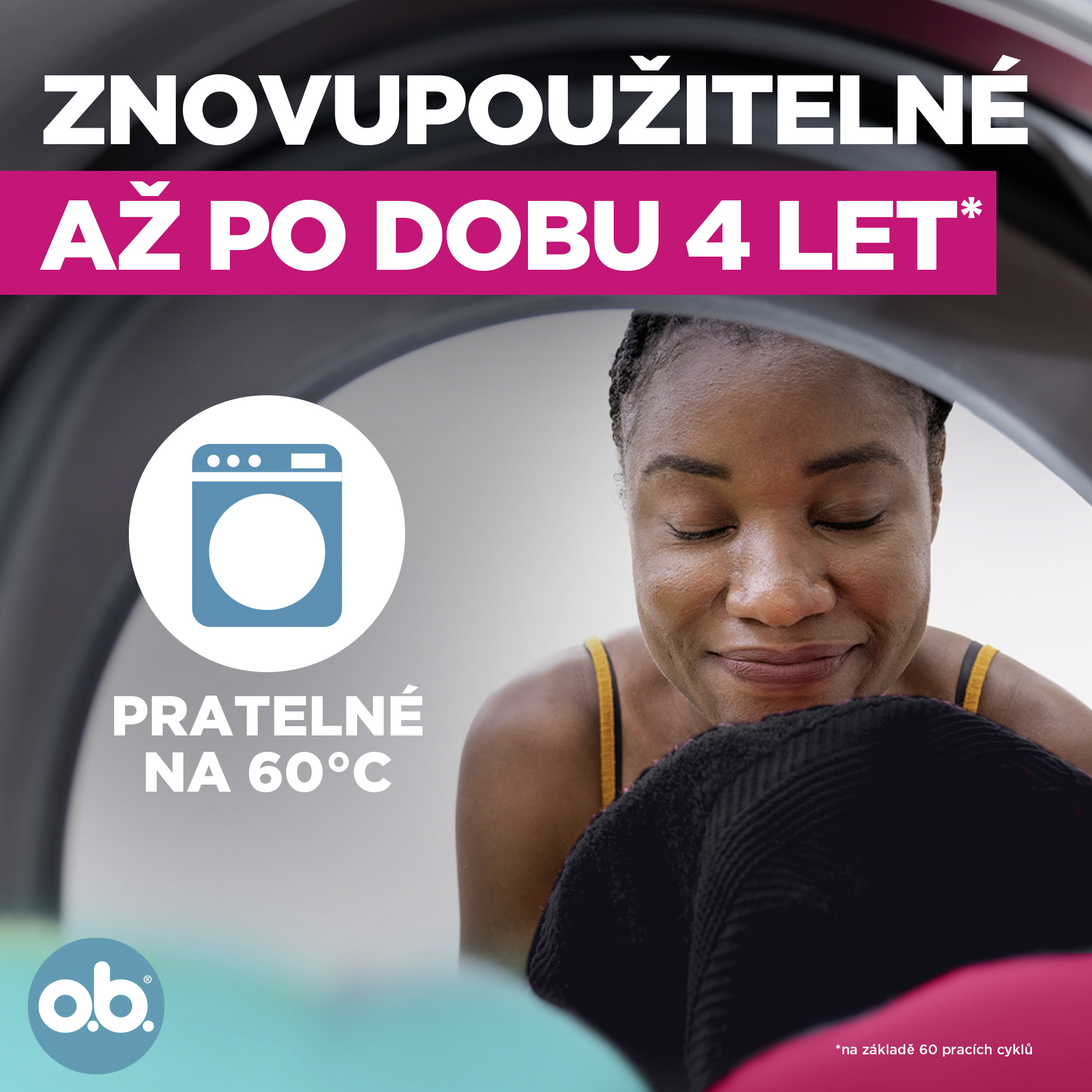 o.b.® menstruační kalhotky vyvinuté Vaším důvěryhodným expertem na menstruaci s více než 70letou zkušeností. S technologií odolnou proti protečení poskytují menstruační kalhotky až 12hodinovou ochranu, lze je prát v pračce na 60°C a jsou znovupoužitelné až po dobu 4 let*. Bez biocidů.