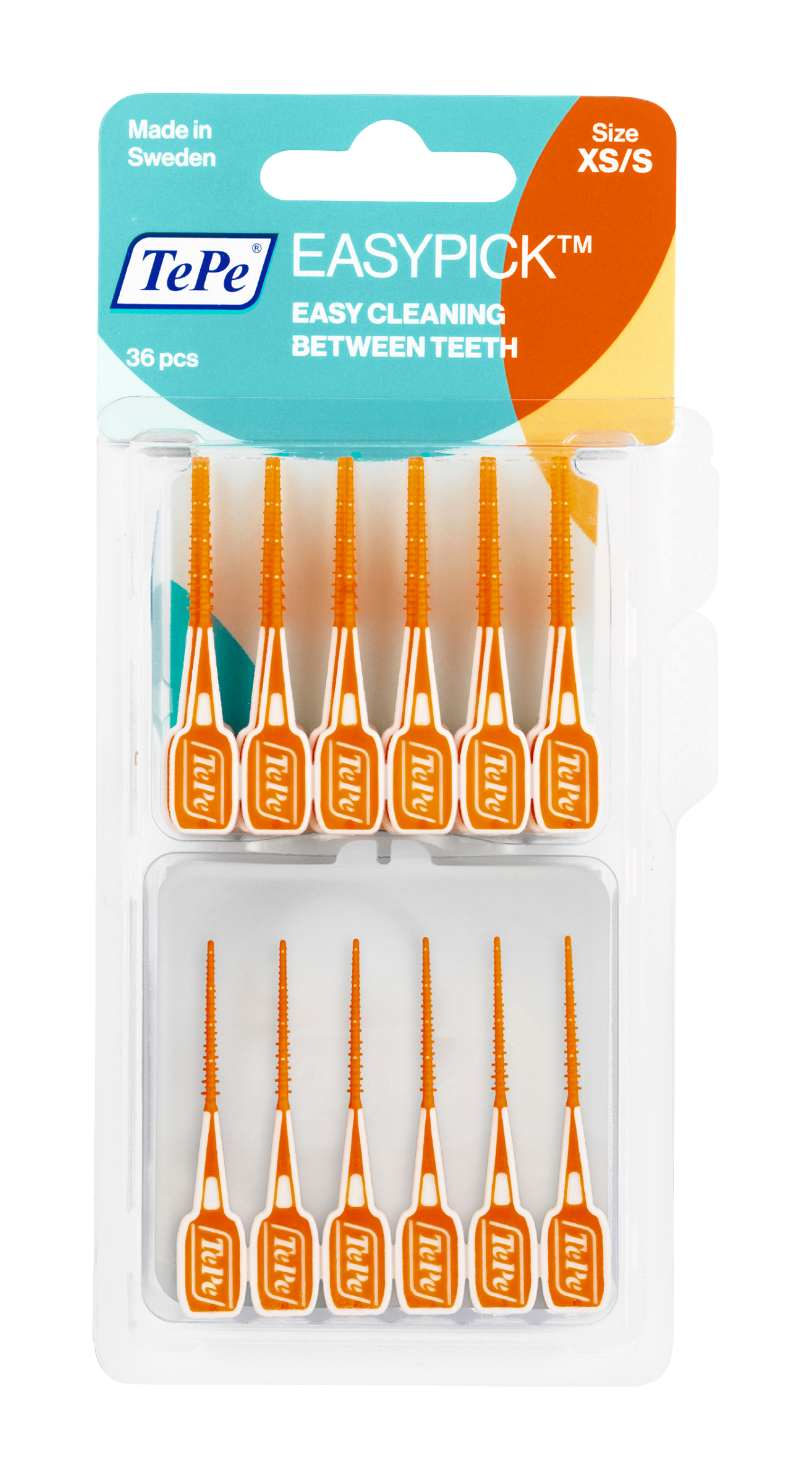Mezizubní kartáčky TePe EasyPick XS/S, 36 ks kombinace výhod párátka a mezizubního kartáčku ideální na cesty nebo pro čištění mezizubních prostor během dne speciální silikonový povrch a protiskluzová rukojeť unikátní lamely vyčistí širokou plochu mezizuzubního povrchu kónický tvar umožní čištění uzších i širší mezizubních prostor šetrné k dásním praktický zásobník na 6 ks součástí balení