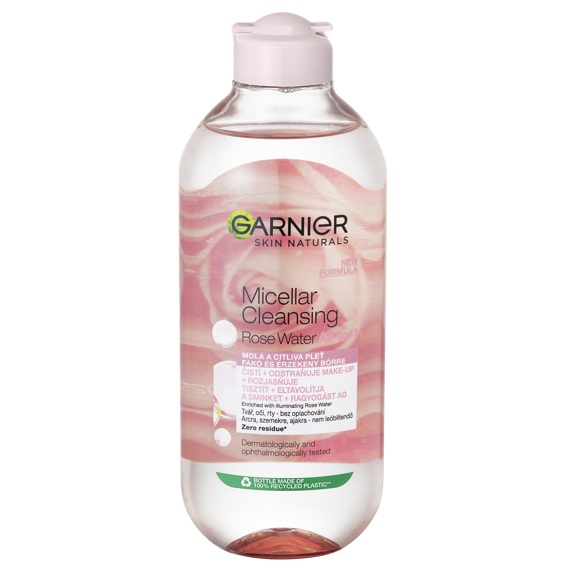 Micelární voda s růžovou vodou odstraňuje make-up, nečistoty a špínu a zároveň rozjasňuje mdlou a citlivou pleť. Toto složení je obohaceno o micely, neviditelné čisticí látky, které zachycují make-up, nečistoty a znečištění jako magnet a účinně je odstraňují bez tření. Obsahuje růžovou vodu známou svými rozjasňujícími vlastnostmi pro zvýšení jasu pleti. Díky své optimální toleranci vyhovuje toto složení všem typům pleti, včetně citlivé.