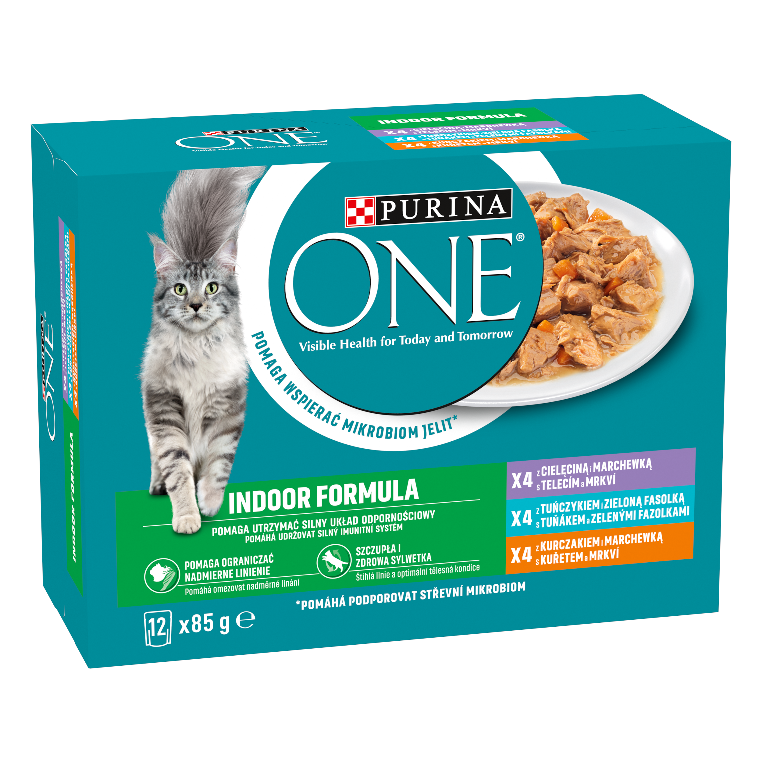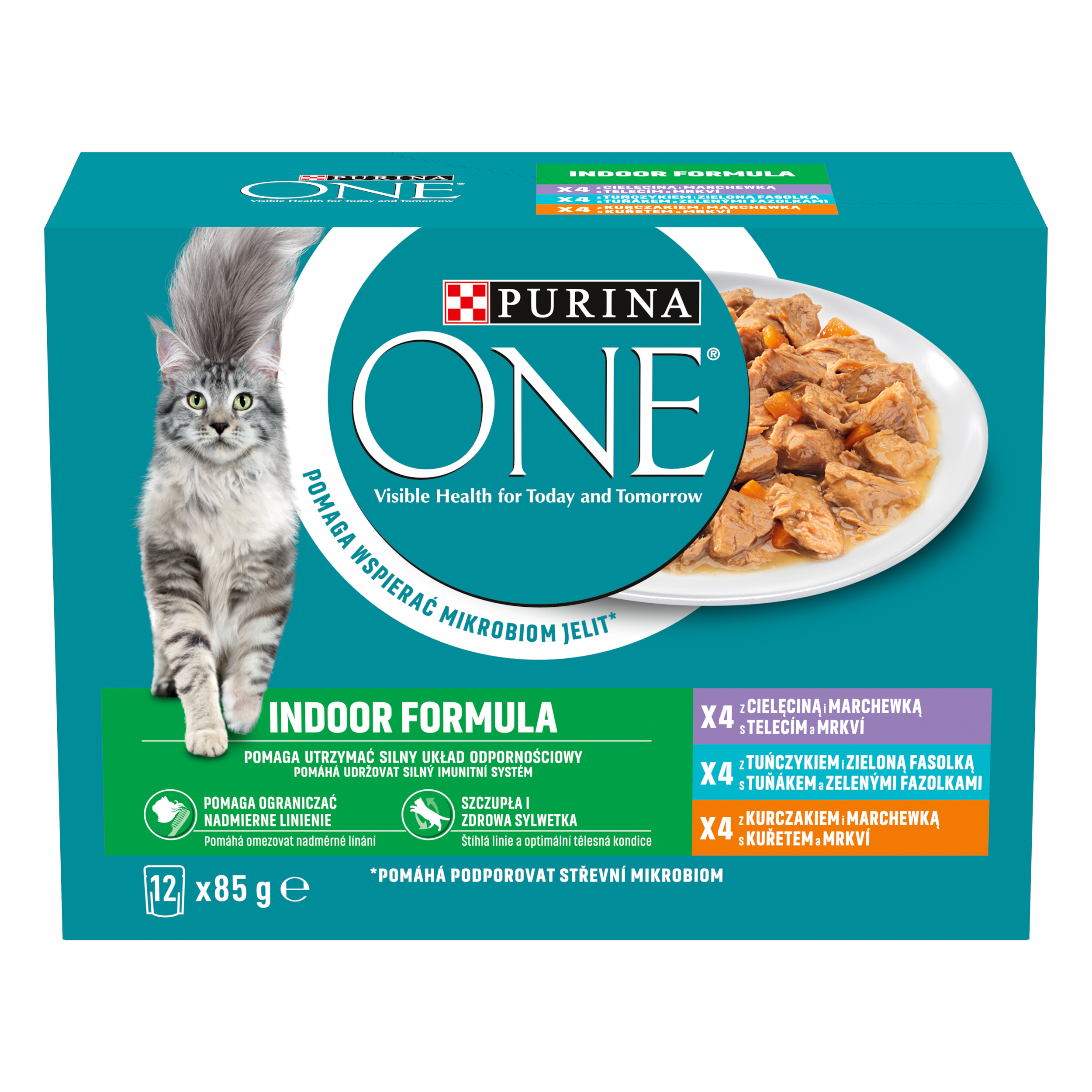 Purina ONE Indoor kapsičky pro kočky kuře, tuňák, telecí ve šťávě 12x 85 g