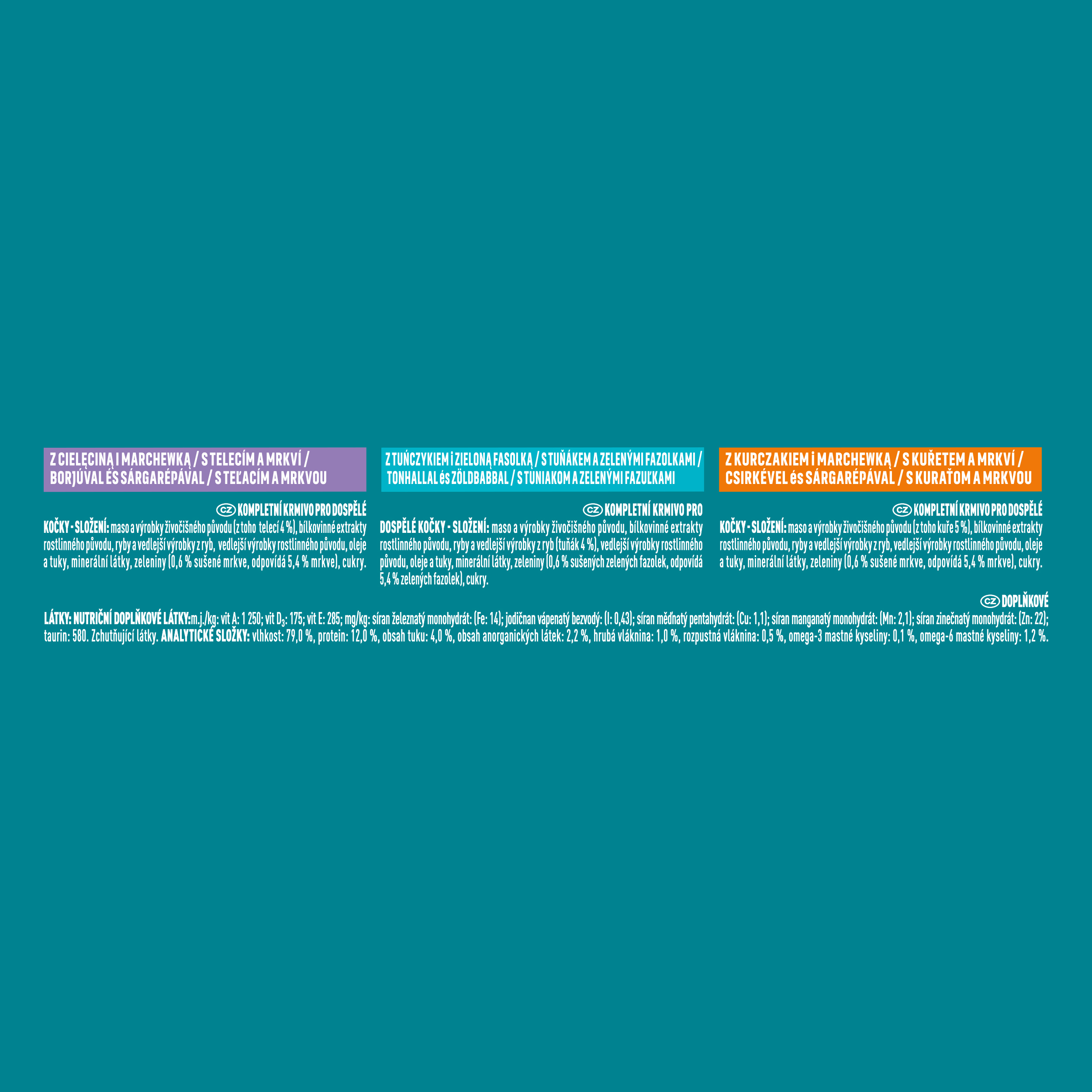 Mini filetky s telecím a mrkví, s kuřetem a mrkví, s tuňákem a fazolkami 12x 85 g