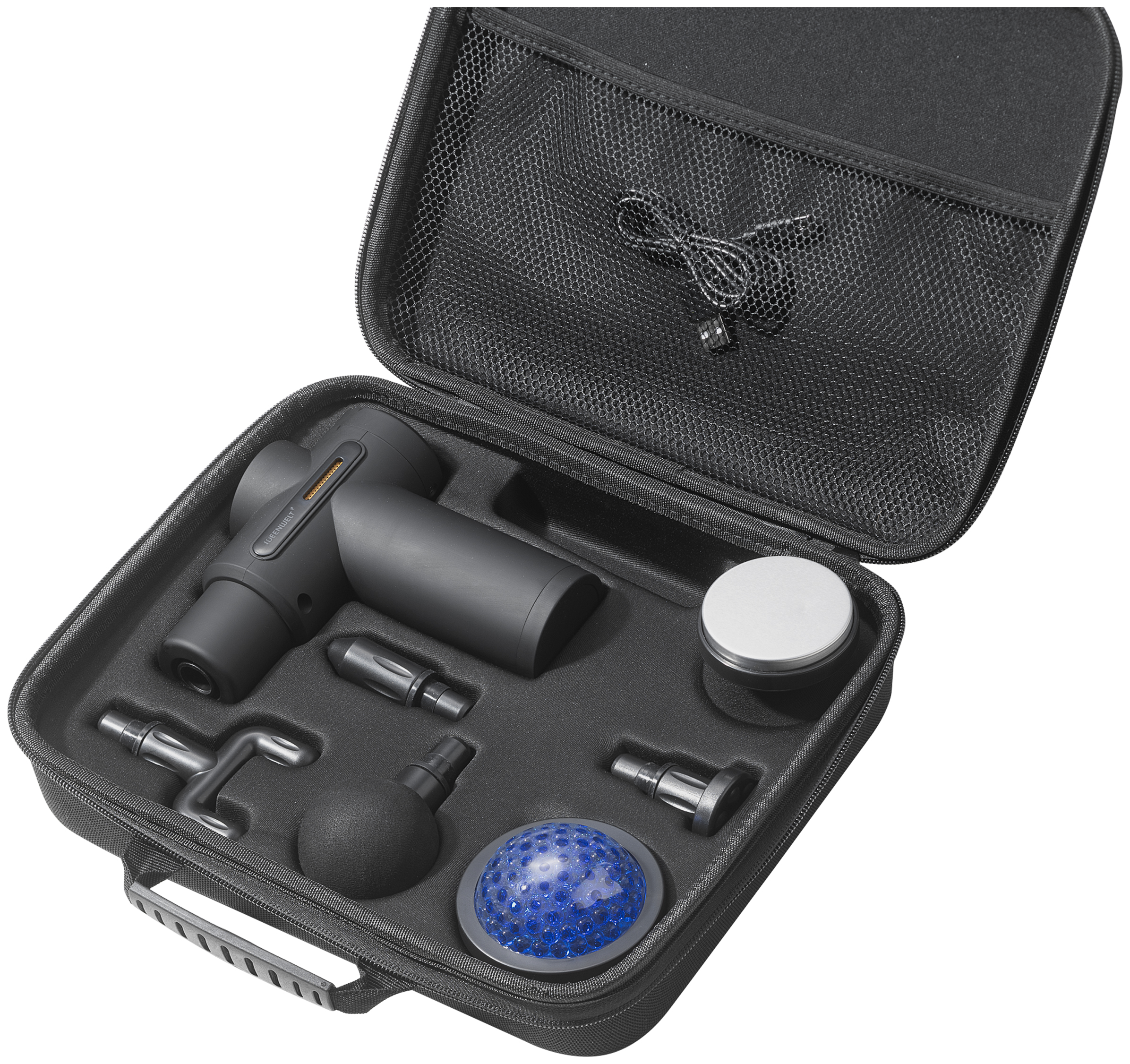Ulevte svému tělu kdykoli a kdekoli s masážní pistolí. Kompaktní, ale výkonná, nabízí 3 úrovně intenzity a efektivně uvolňuje svalové napětí. LCD displej vám přehledně ukáže stav baterie i zvolenou intenzitu. Součástí balení je 6 různých nástavců, USB nabíjecí kabel a praktický úložný vak. Lithium-iontová baterie zajistí až 3 hodiny provozu – ideální společník pro regeneraci po tréninku i odpočinek doma.