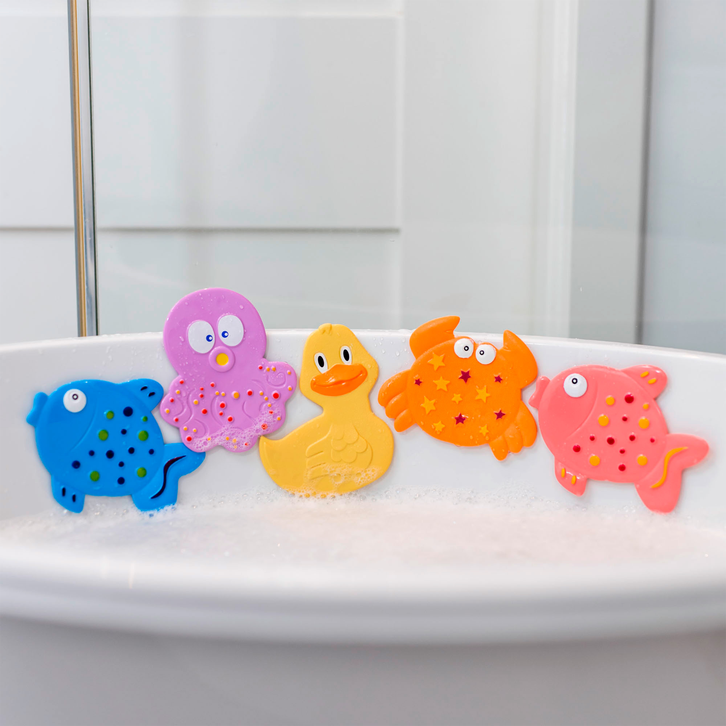 Sada protiskluzových mini podložek do vany ve tvaru mořských zvířátek chrání dítě před uklouznutím ve vaně. V balení 5 ks barevných zvířátek.