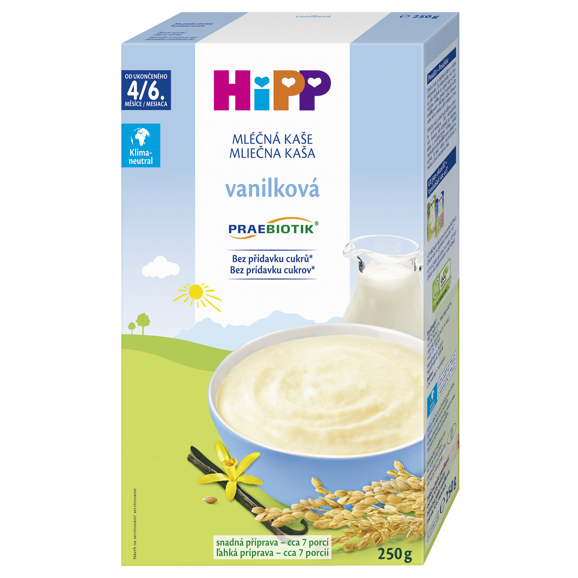 První mléčná obilná kaše PRAEBIOTIK® s extraktem z Bourbonské vanilky je ideálním jídlem v období přikrmování a pro poznávání nových chutí vašeho dítěte. Je vhodná pro kojence od ukončeného 4. měsíce jako doplněk ke kojení či k počátečnímu mléku. Má velmi jemnou strukturu a lahodnou přirozenou chuť. Kaši připravíte velmi jednoduše – smícháním s převařenou vodou určenou pro kojence.