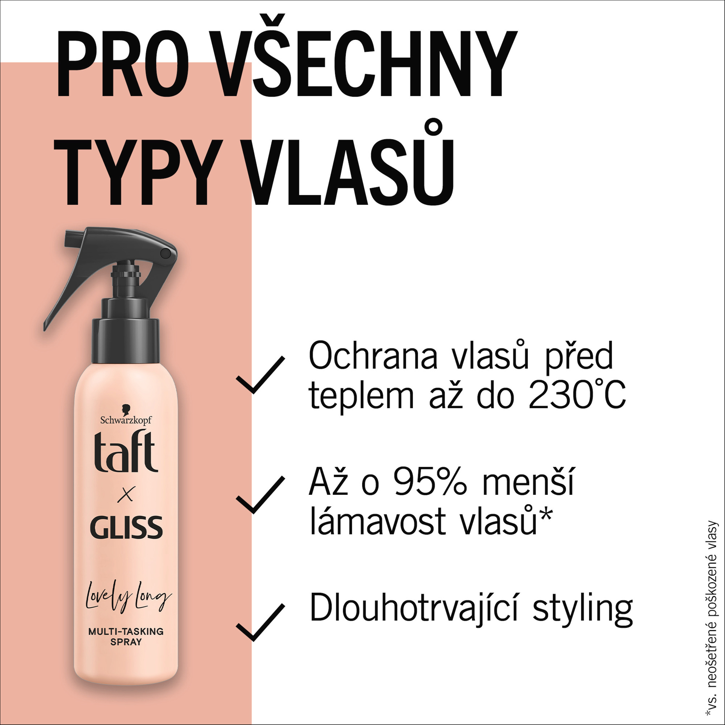 - Až o 95% menší lámavost vlasů vs. neošetřené, poškozené vlasy