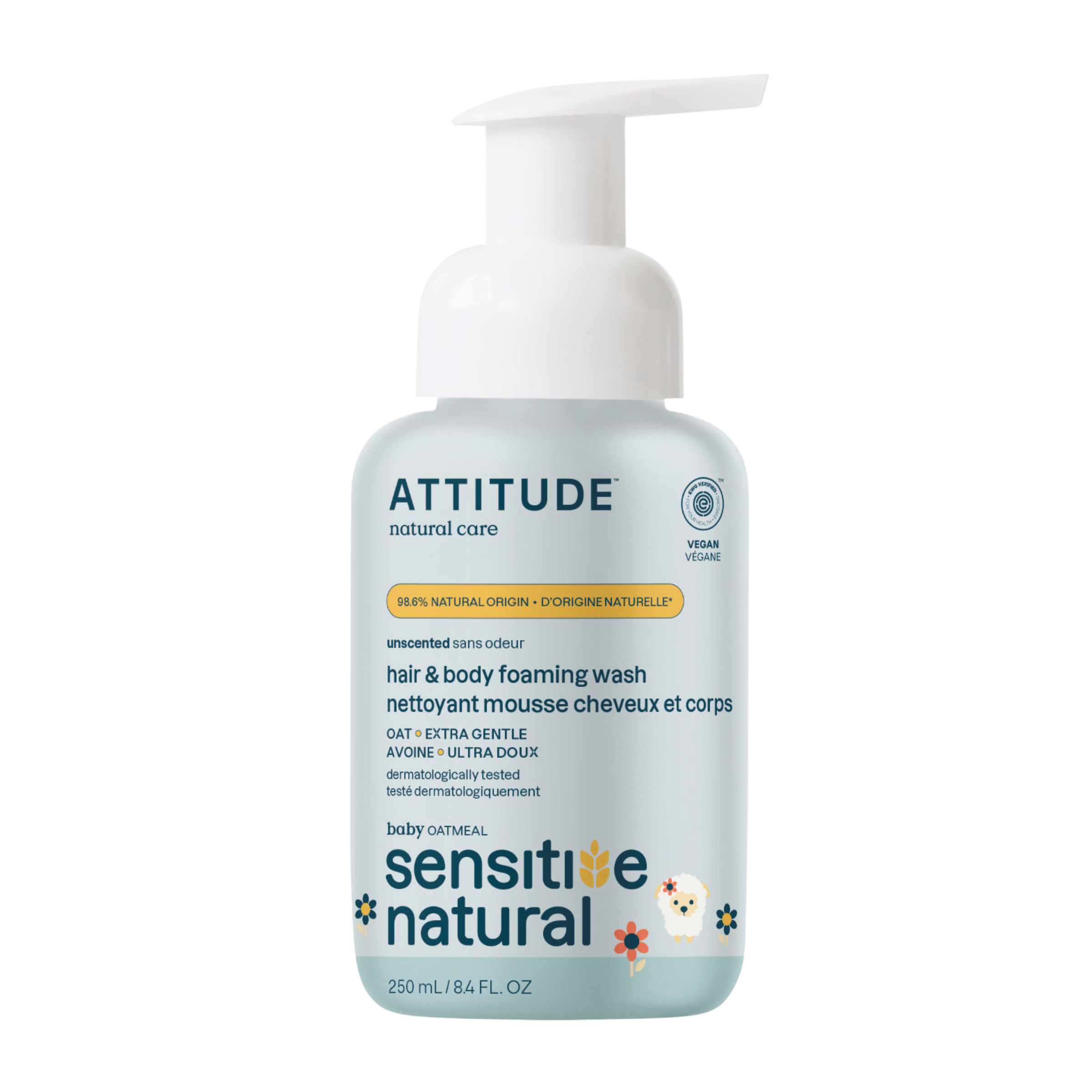 Dětská mycí pěna 2v1 ATTITUDE s ovsem šetrně čistí jemnou pokožku i vlásky těch nejmenších, aniž by narušovala jejich přirozenou ochrannou bariéru. Díky obsahu koloidních ovesných vloček aktivně zklidňuje podráždění, svědění i suchost. Mycí pěna Attitude neobsahuje sulfáty ani parfemaci, takže šetrně pečuje o citlivou pokožku dětí. Certifikace EWG VERIFIED™ („Environmental Working Group“) potvrzuje její bezpečnost pro děti i šetrnost k přírodě. Veganské složení bez živočišných složek respektuje nejen dětskou pokožku, ale i etické zásady udržitelné kosmetiky.