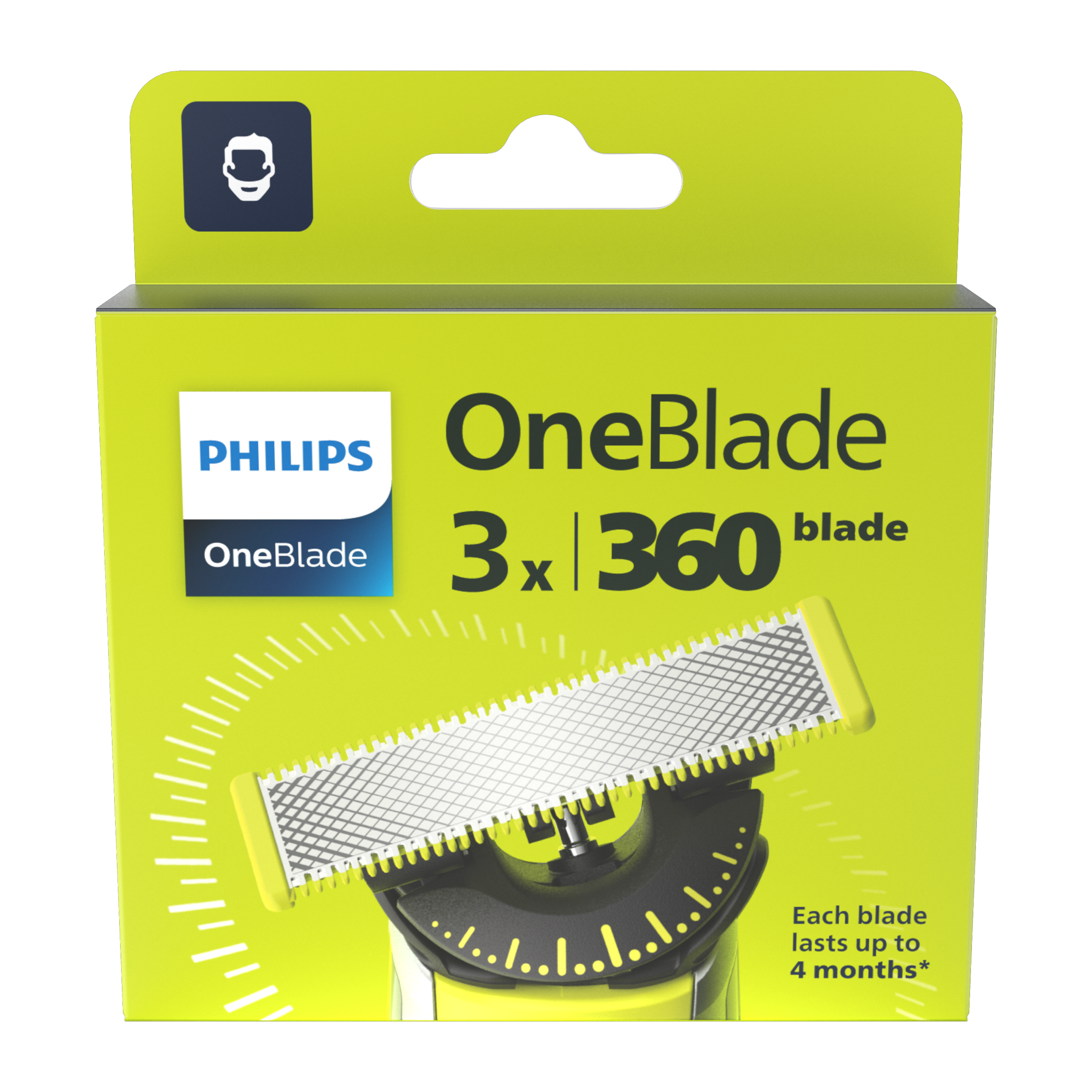 Zažijte revoluci v holení s břitem OneBlade 360 – navrženým pro méně tahů a větší komfort. Každý břit z nerezové oceli vám poskytne až 4 měsíce skvělého výkonu, a to jak při mokrém, tak suchém použití.