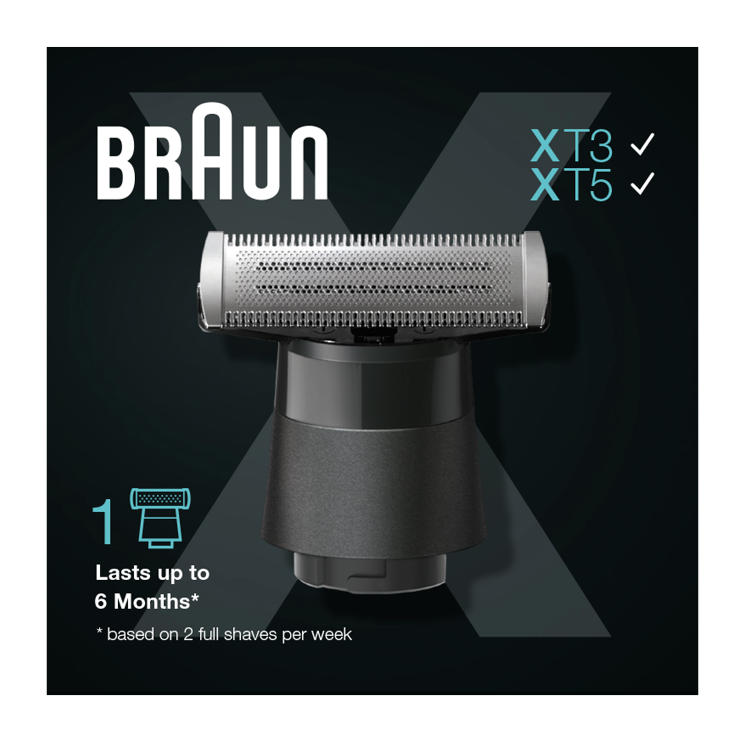 Tato náhradní holicí hlavice je kompatibilní se všemi hybridními zastřihovači vousů a elektrickými holicími strojky Braun Series X. Vyznačuje se 4 holicími prvky v 1 hlavici - 2 bočními zastřihovači a 2 centrálními holicími zónami. Specializovaná technologie 4D-Blade zajišťuje snadné a pohodlné oholení, které je šetrné k pokožce. Hlavice je plně vodotěsná a je vyrobená ze 100% nerezové oceli. Je navržena tak, aby vydržela dlouho ostrá – holí až 6 měsíců*.