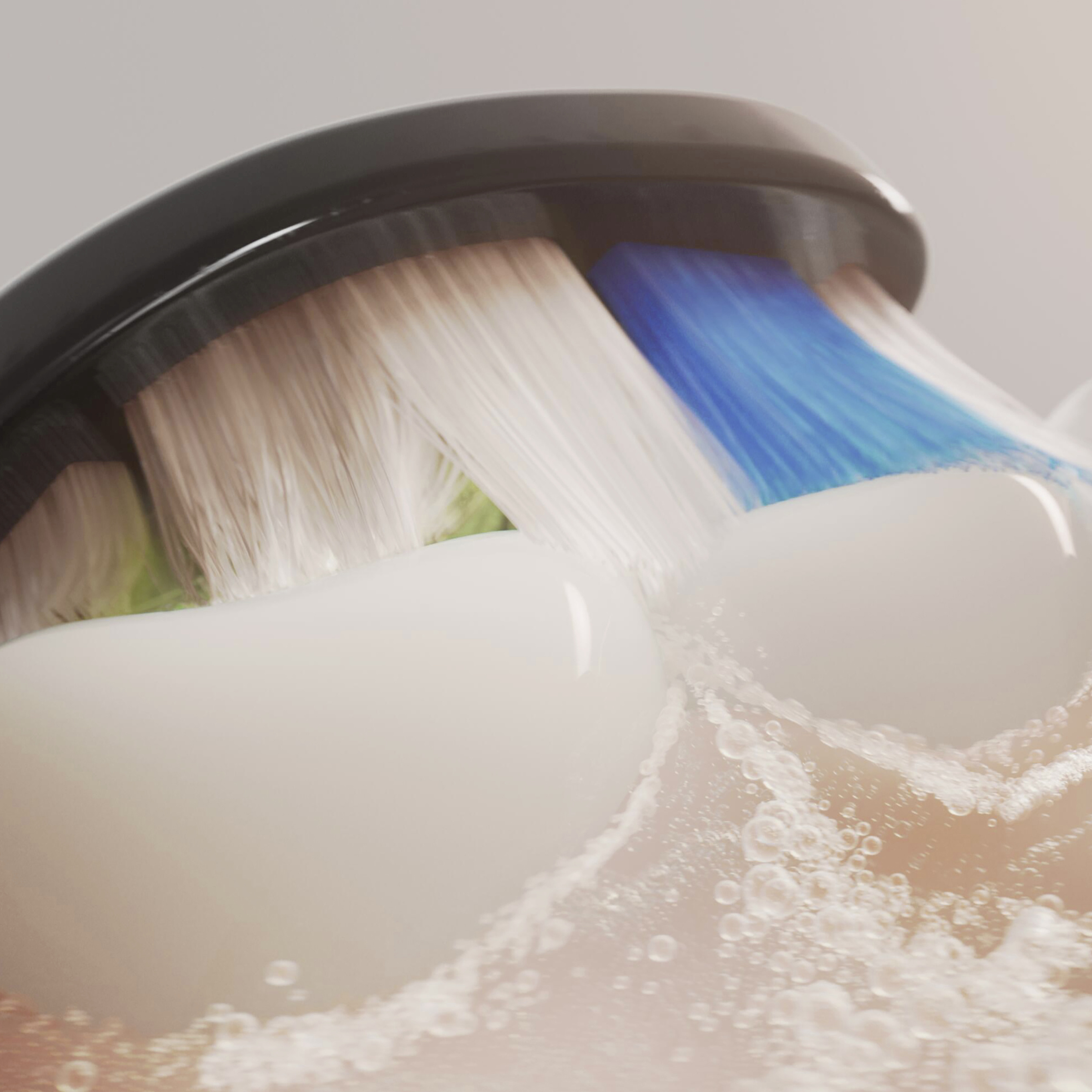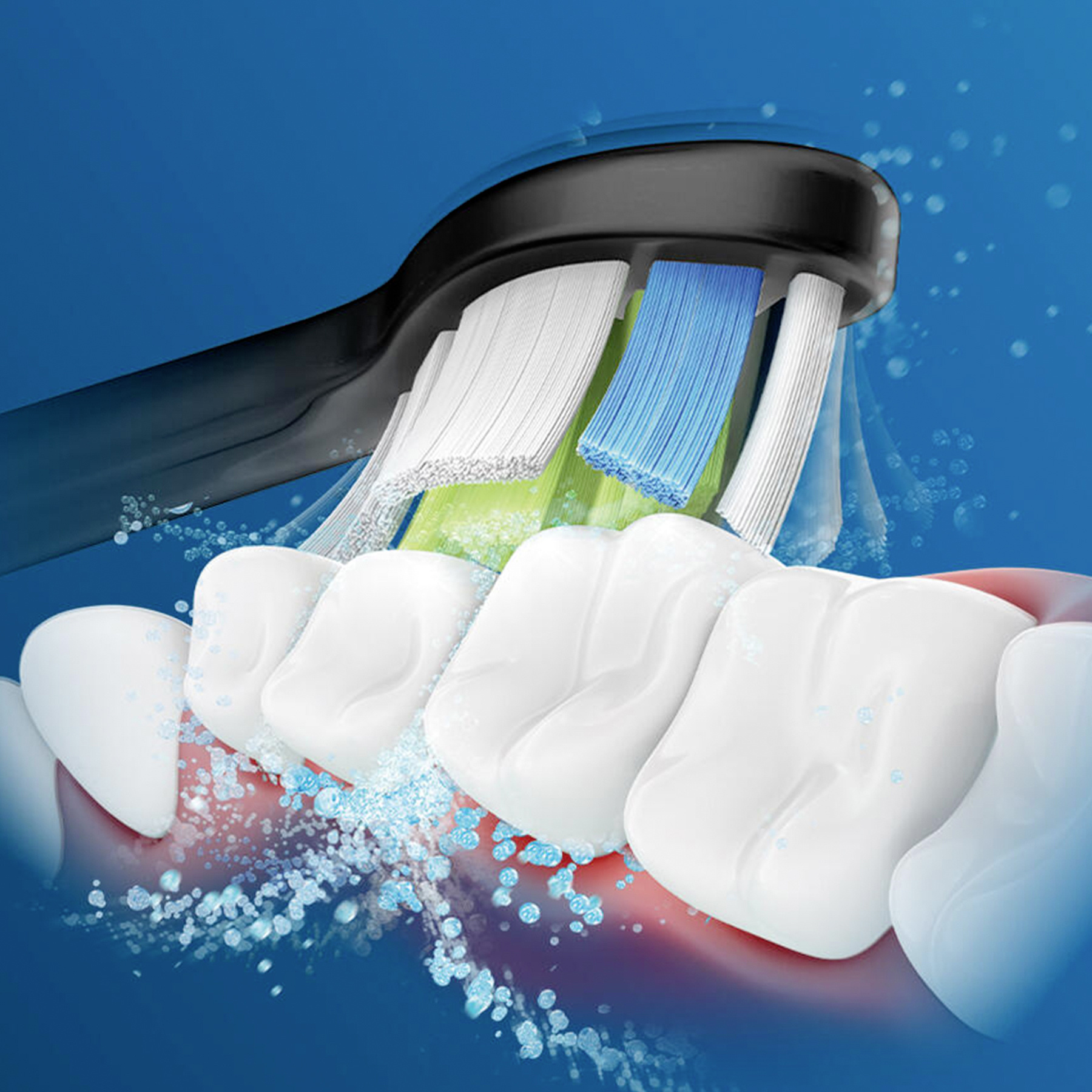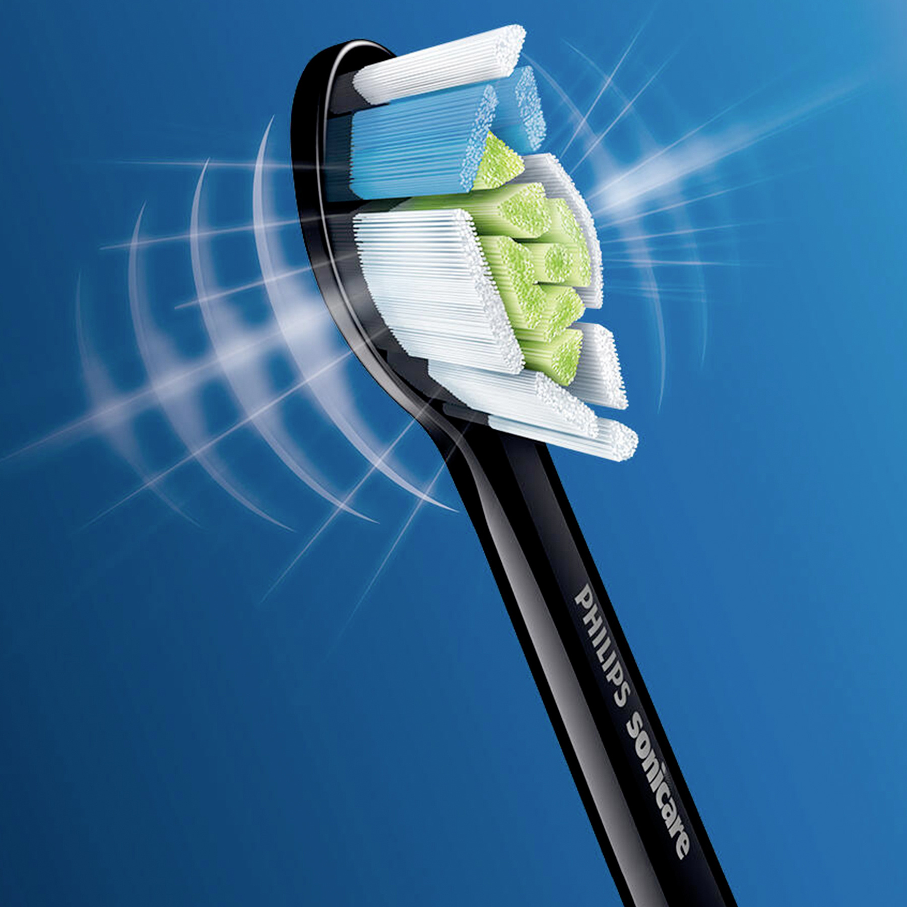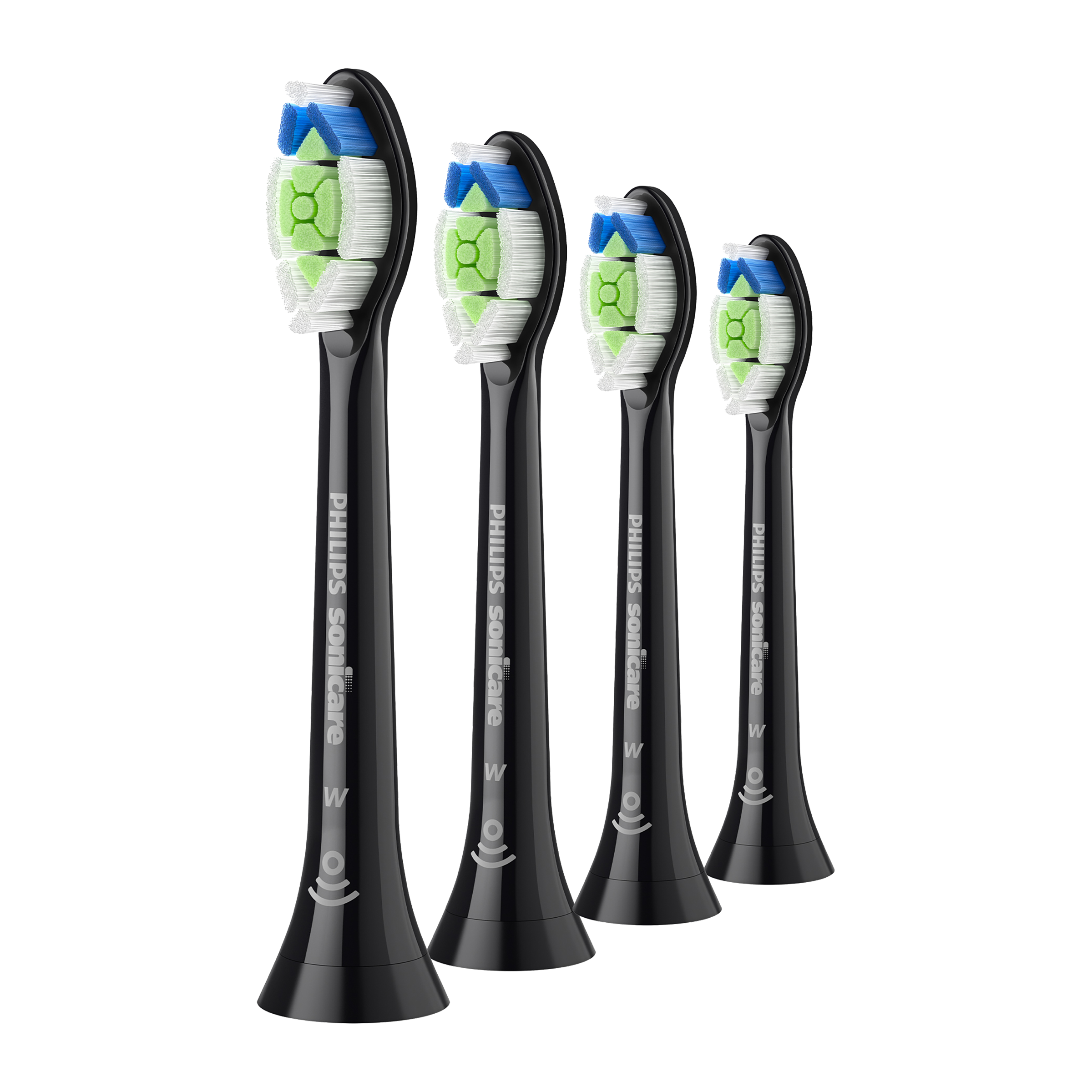Hlavice Philips Sonicare Optimal White. Standardní velikost hlavice s průřezy vláken ve tvaru diamantového brusu je vyvinuta pro efektivnější odstranění pigmentů z povrchu zubů. Odstraňuje až 7x více plaku než manuální kartáček. Pro optimální výsledky měňte hlavice každé 3 měsíce. Hlavice jsou kompatibilní se všemi modely kartáčku Philips Sonicare 3. generace. Černá barva. Balení obsahuje 4 ks.