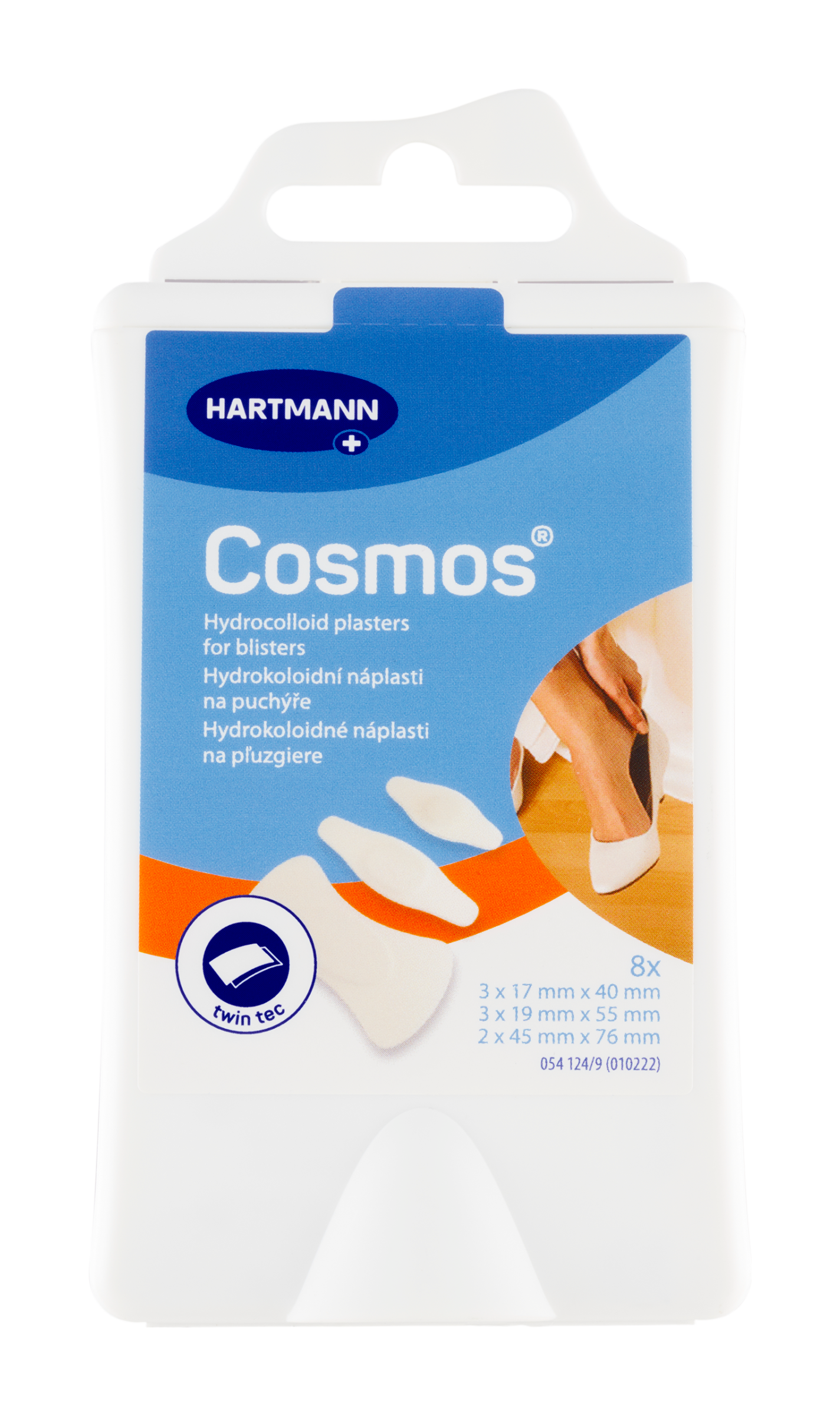 Hydrokoloidní náplasti na ochranu a léčbu puchýřů. Twin tec - Silnější polštářek složený ze dvou vrstev hydrokoloidů chrání puchýře před tlakem a třením.