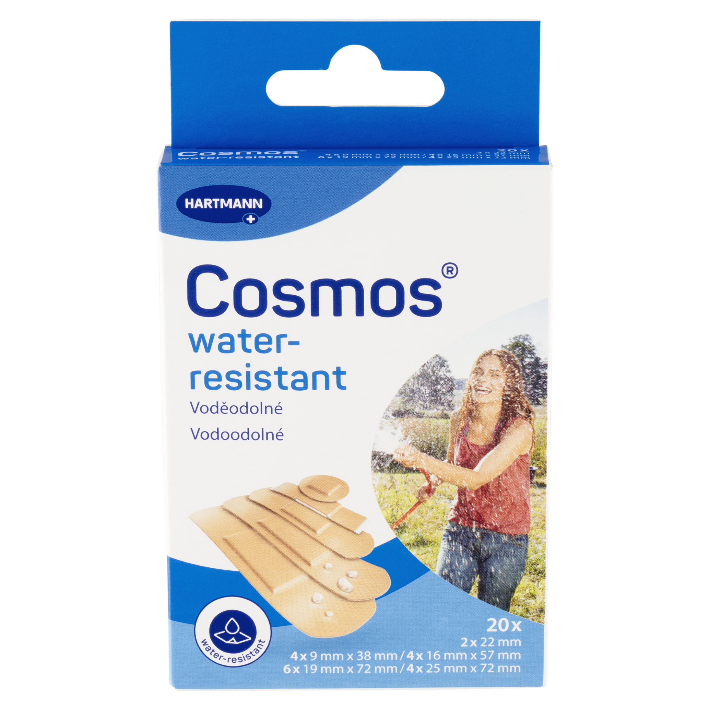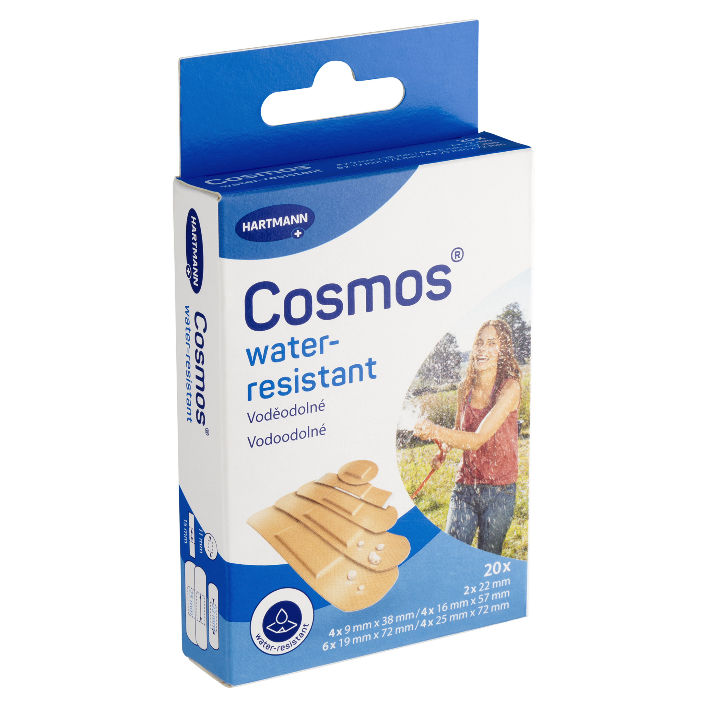 Voděodolné náplasti na ochranu malých ran, vyrobené z fólie odpuzující nečistoty. Voděodolné náplasti pro ochranu malých ran, vyrobené z fólie odpuzující nečistoty.