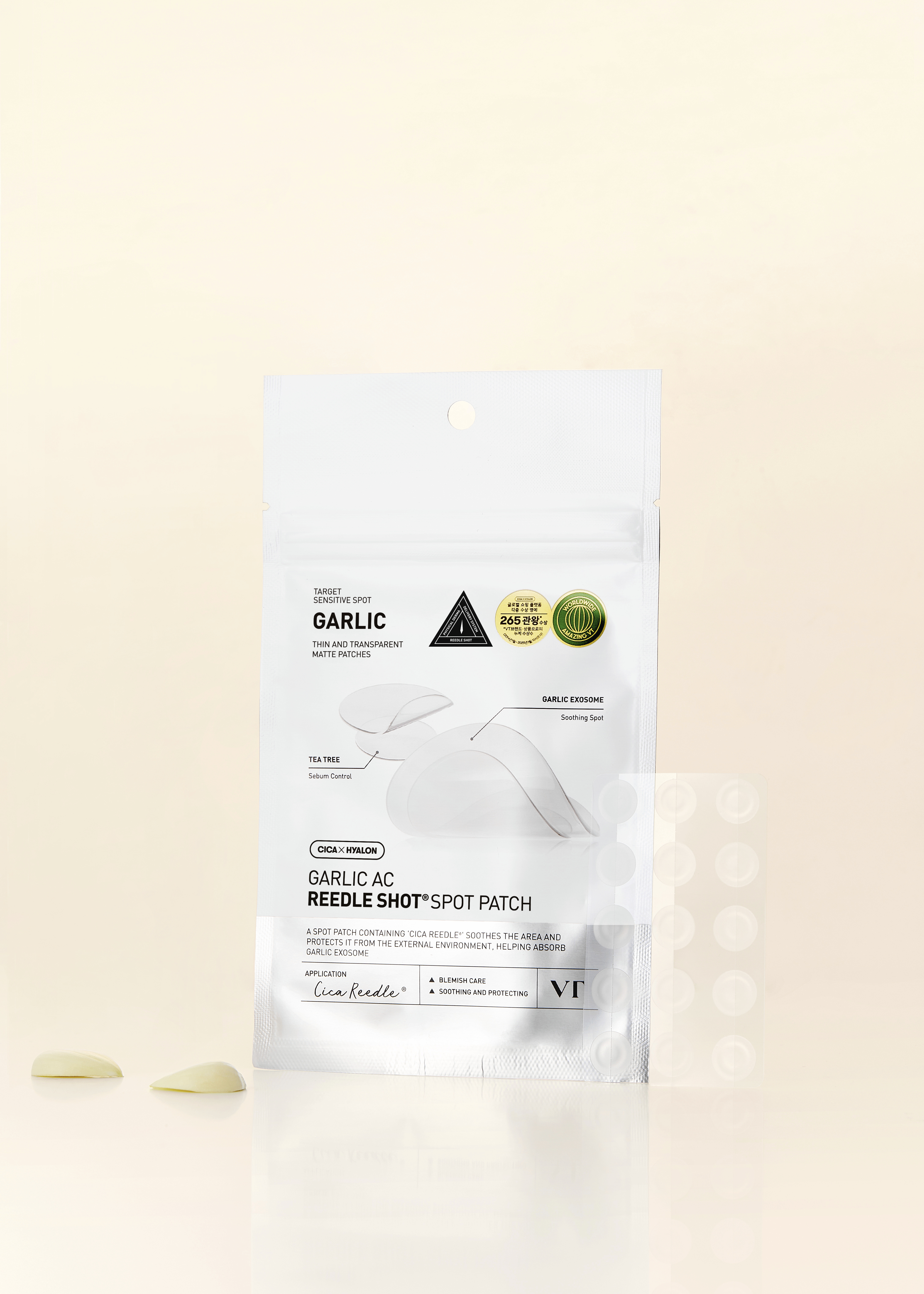 Rychle působící náplast na akné s exosomem česneku hojí nedokonalosti v počátečním stadiu a zklidňuje postiženou oblast. Ultra lehká a téměř neviditelná náplast: 0,18 mm ultratenká a prodyšná náplast. K dispozici ve velké a malé velikosti.
