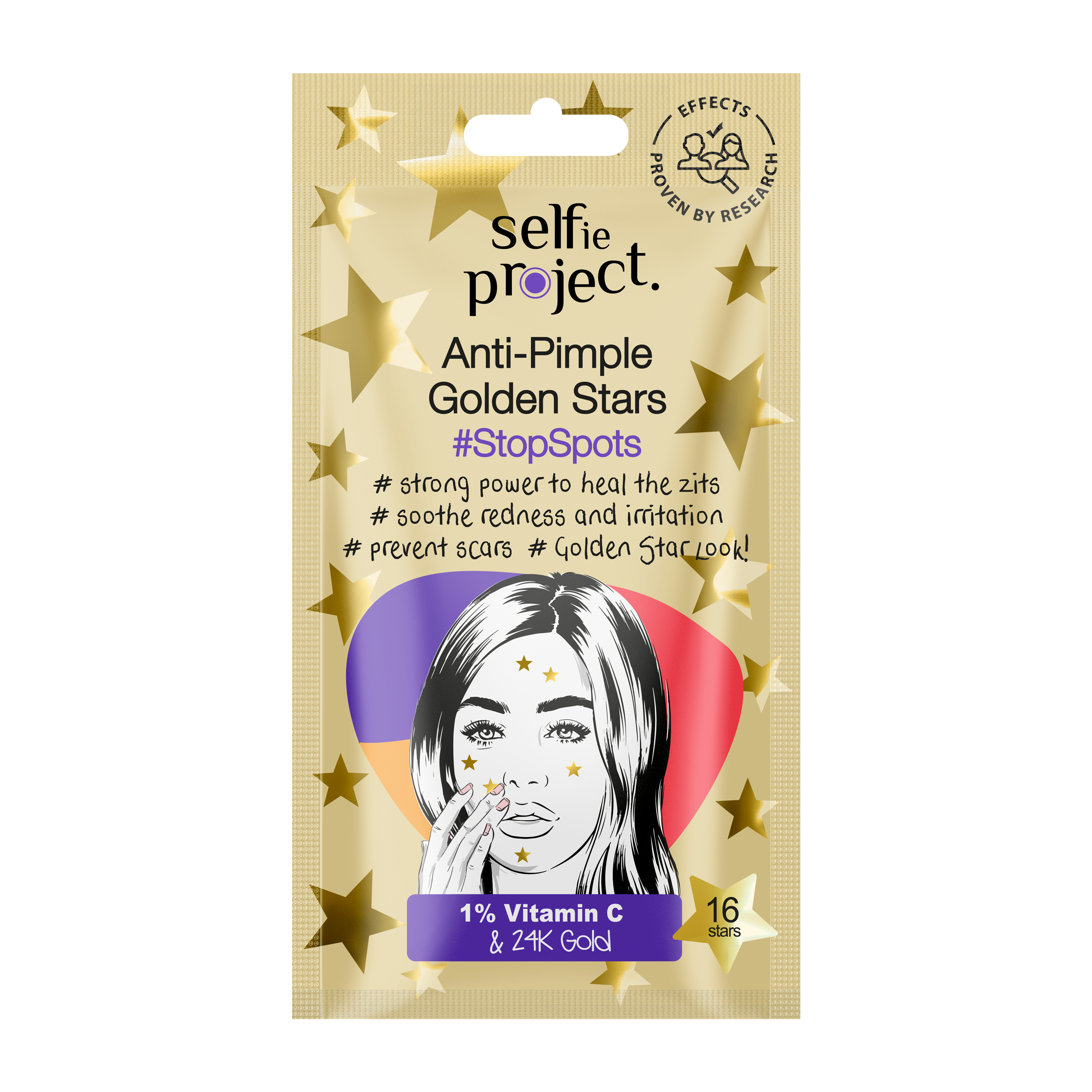 Anti-Pimple Golden Stars #StopSpots je speciální složení na akné, které kombinuje čistící sílu vitamínu C, 24K zlata a reflexní, okouzlující #Shiny Star Look!