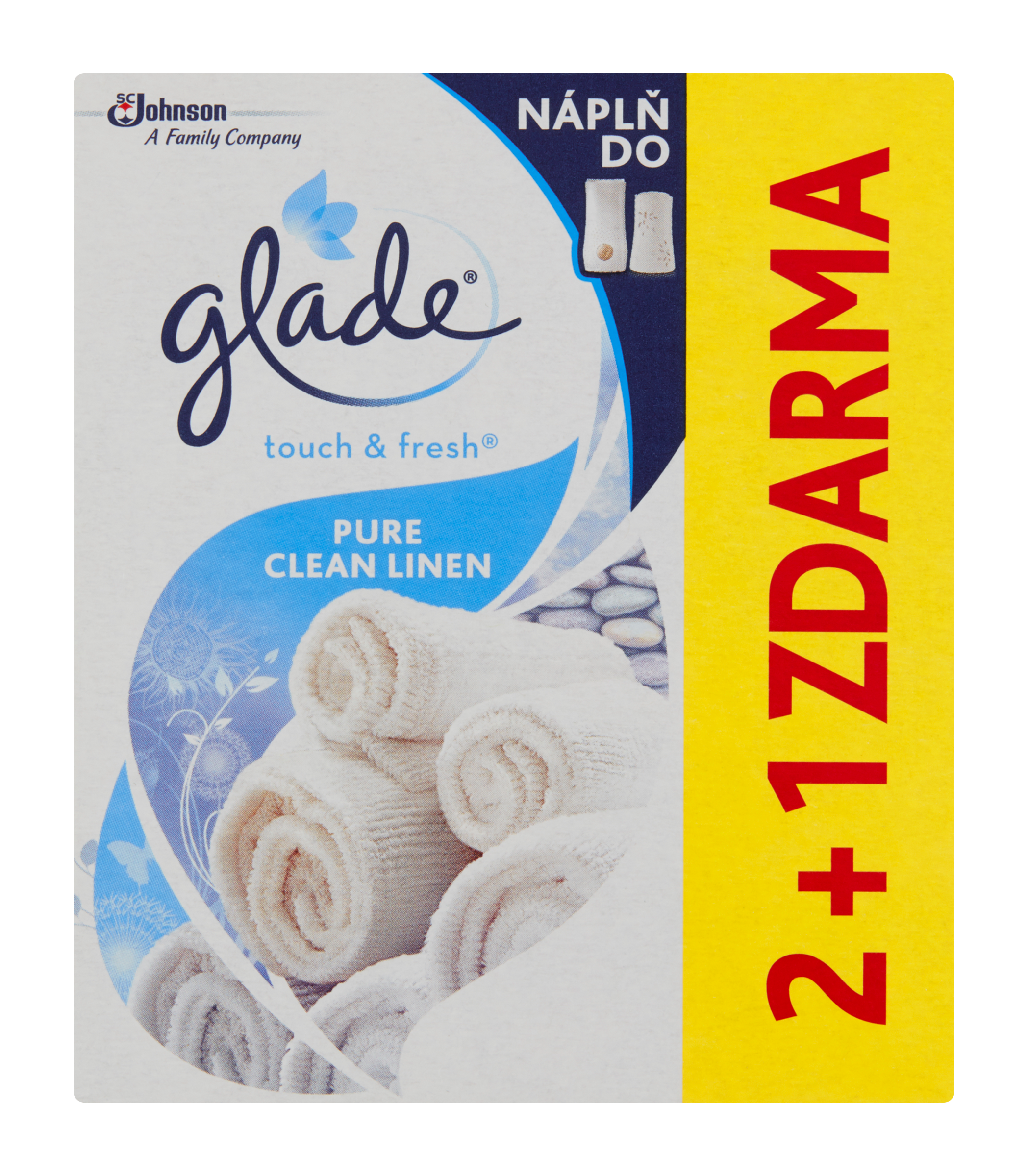 Glade® touch & fresh® Pure Clean Linen Oblíbená vůně čerstvě pověšeného prádla získala moderní nádech s tóny vodního melounu, svěžího vzduchu a jiskrné citrusové vůně. Aerosolový osvěžovač vzduchu Glade® touch & fresh® nabízí koncentrovanou svěžest** v nenápadném a moderním provedení. Stačí jedno zmáčknutí a místnost se naplní svěží vůní. **ve srovnání s koncentrací vůně v základním Glade® aerosolu.