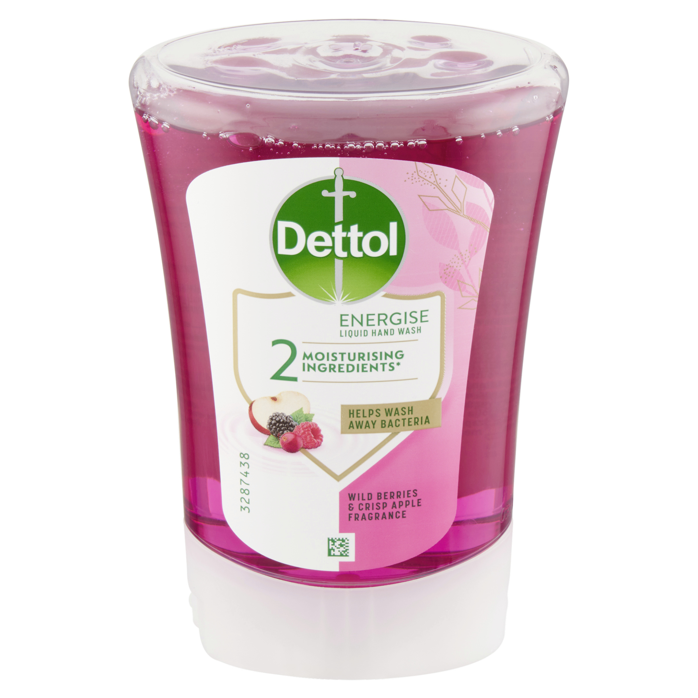Dettol tekuté mýdlo Vůně lesního ovoce náplň do bezdotykového dávkovače je obohacené o 2 hydratační složky*, které pomáhají udržovat přirozené pH pokožky. Naše složení je vhodné pro všechny typy pokožky a na každodenní použití. *obsahuje glycerin a kyselinu mléčnou.