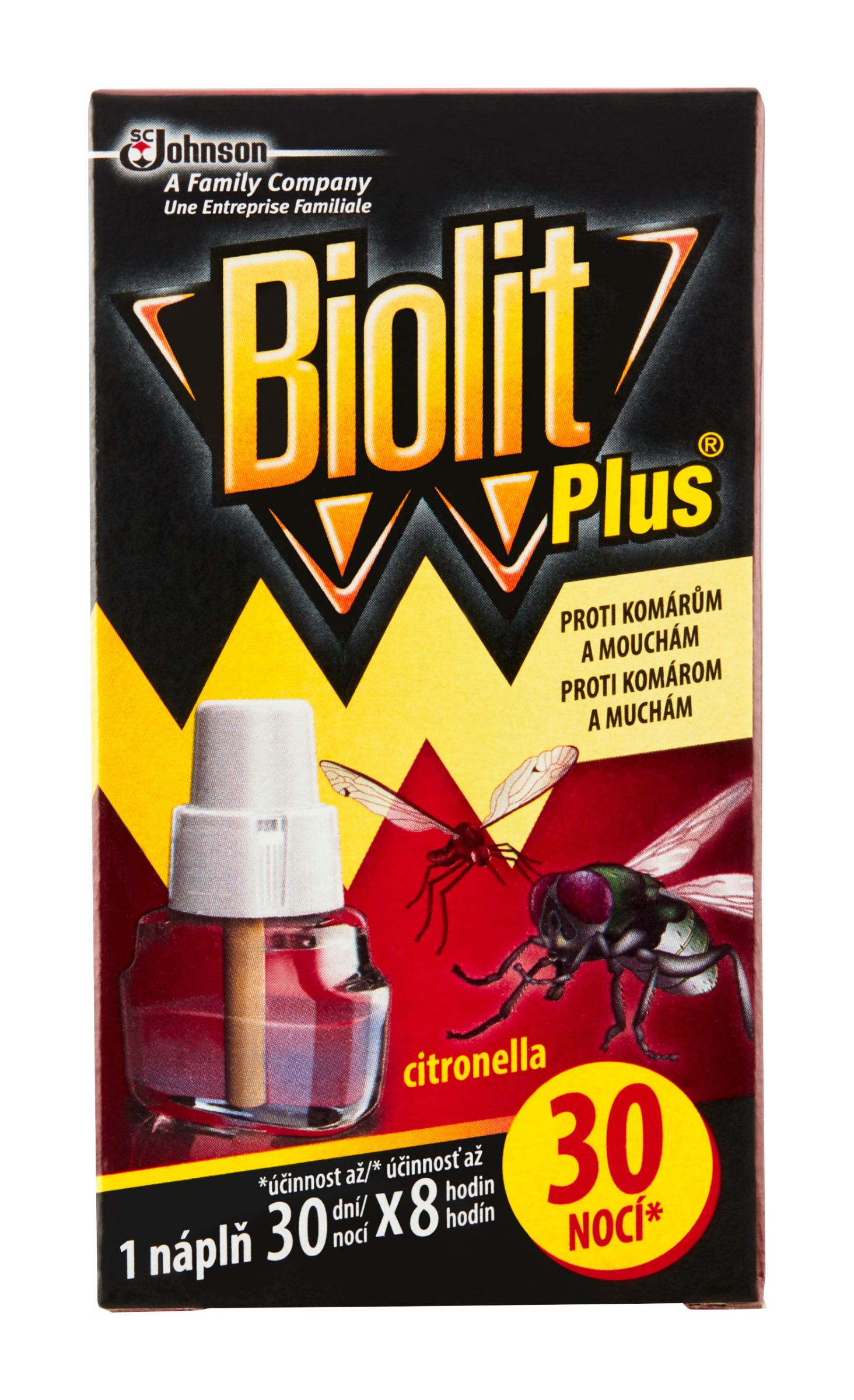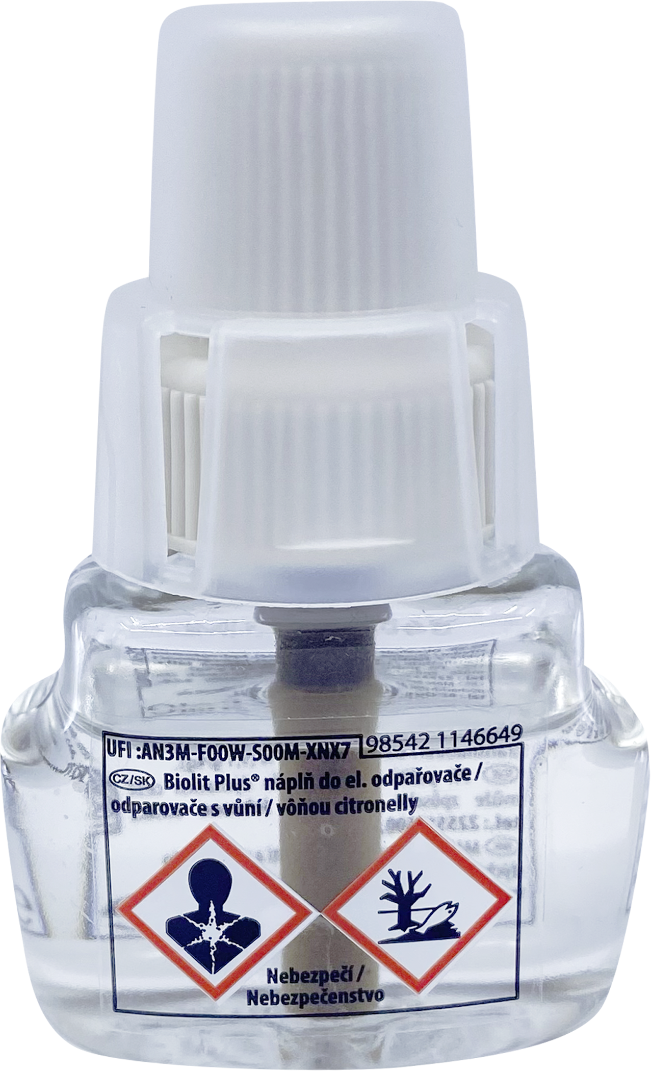 Biolit® Plus nápň do el. odpařovače s vůní citronelly, insekticid. Nebezpečí Obsahuje: destiláty (ropné), hydrogenované střední; destiláty (ropné), hydrogenované lehké; citronelový olej. Účinná látka: 0,88 g transfluthrinu ve 100 g přípravku. Při požití a vniknutí do dýchacích cest může způsobit smrt. Vysoce toxický pro vodní organismy, s dlouhodobými účinky. Je-li nutná lékařská pomoc, mějte po ruce obal nebo štítek výrobku. Uchovávejte mimo dosah dětí. Po manipulaci důkladně omyjte ruce.