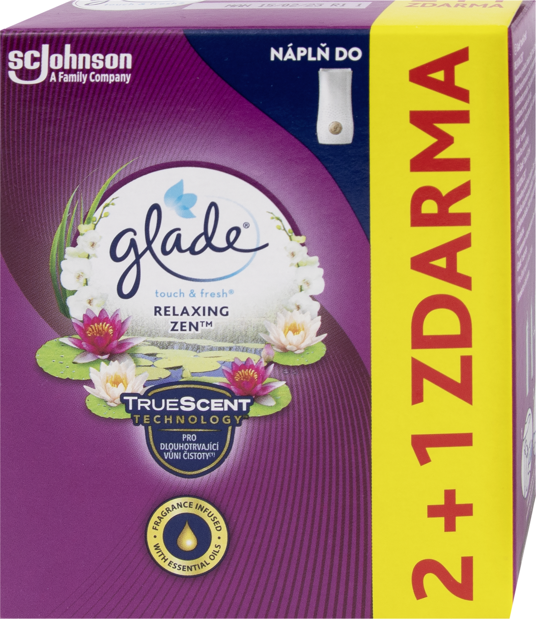 Náplň Glade by Brise One Touch 2+1 Japonská zahrada do sprejového osvěžovače vzduchu. Vytváří jemnou mlhu z vůně, která odstraní nepříjemné pachy a na dlouhou dobu provoní každou toaletu či koupelnu.