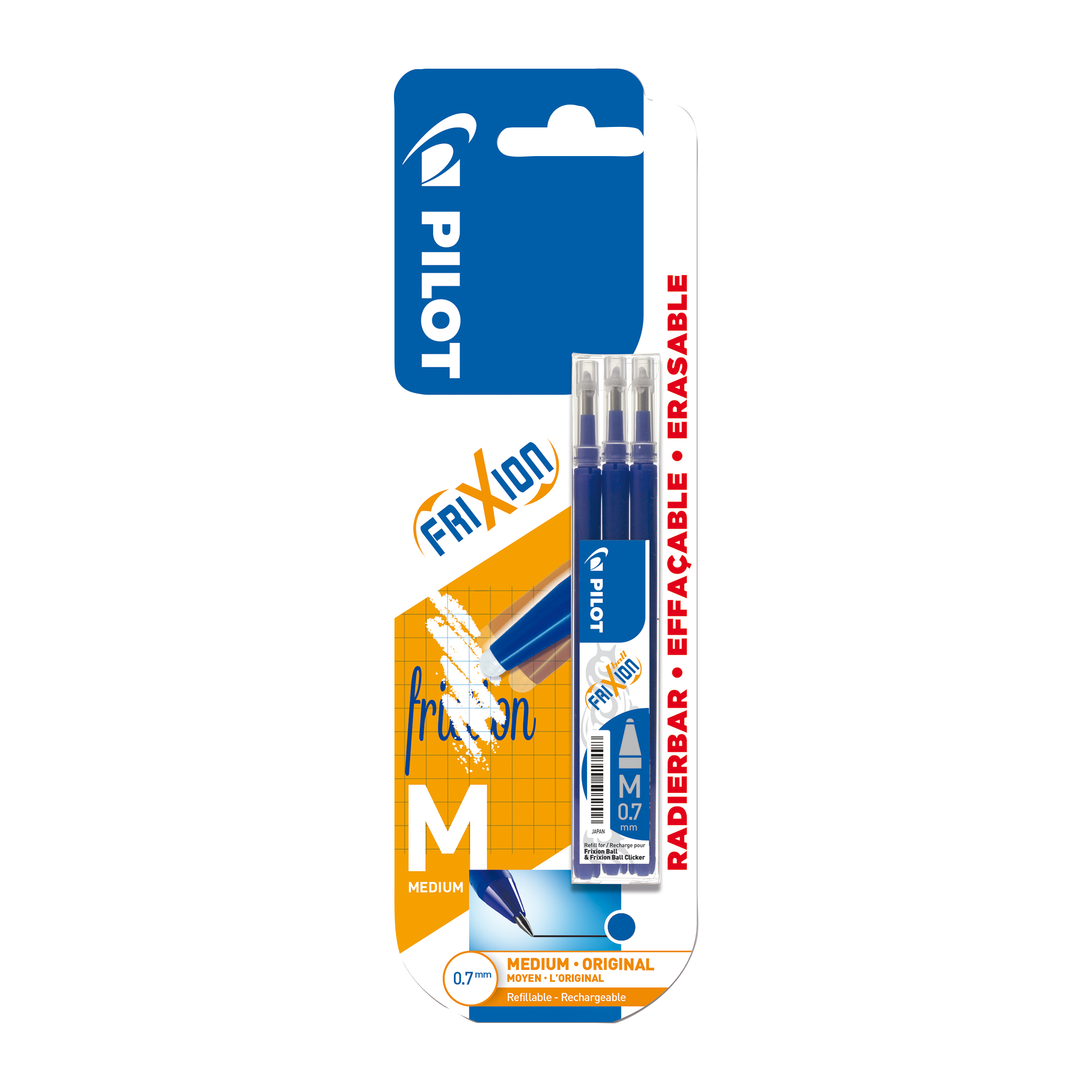 Náplň pro rollery Pilot Frixion nebo Pilot Frixion Clicker. Šíře hrotu M 0,7 mm, šíře stopy 0,35 mm.
