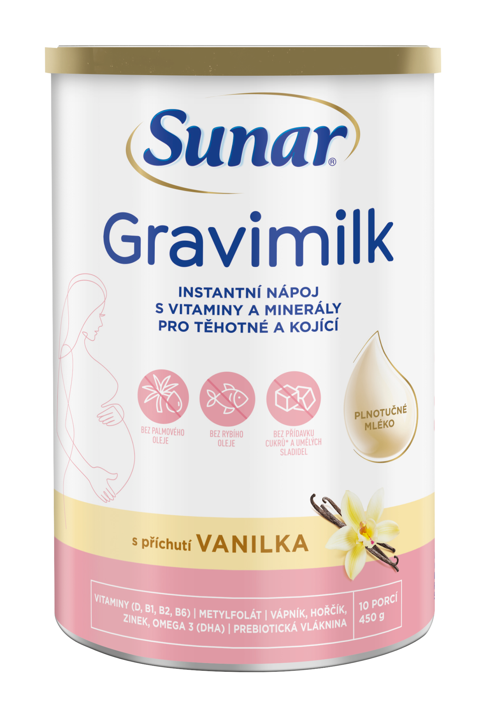 Sunar Gravimilk s příchutí vanilka je obohacený mléčný nápoj pro plánované těhotenství, těhotné ženy a kojící maminky. Sunar Gravimilk je vyrobený z plnotučného mléka a je bez přidaných cukrů a umělých sladidel. Je obohacený o vybrané vitaminy a minerální látky, na jejichž dostatečný příjem je v tomto období kladen větší důraz. Pokud kojíte nebo čekáte děťátko, víte, že na vyvážené stravě zvláště záleží, protože již nejde jen o vás. Sunar Gravimilk je mléčný nápoj, určený k obohacení jídelníčku těhotných žen i kojících maminek, který navíc pomáhá dodržovat pitný režim. Obsahuje omega-3 (DHA) + vyvážené množství vitaminů, minerálních látek a dalších potřebných živin. Gravimilk má nyní vylepšenou recepturu, která byla vyvinuta na základě aktuálních poznatků o výživě, a také ve spolupráci s nastávajícími a kojícími maminkami. Má vynikající přirozeně mléčnou chuť díky obsahu plnotučného mléka a neobsahuje žádné přidané cukry ani umělá sladidla.
