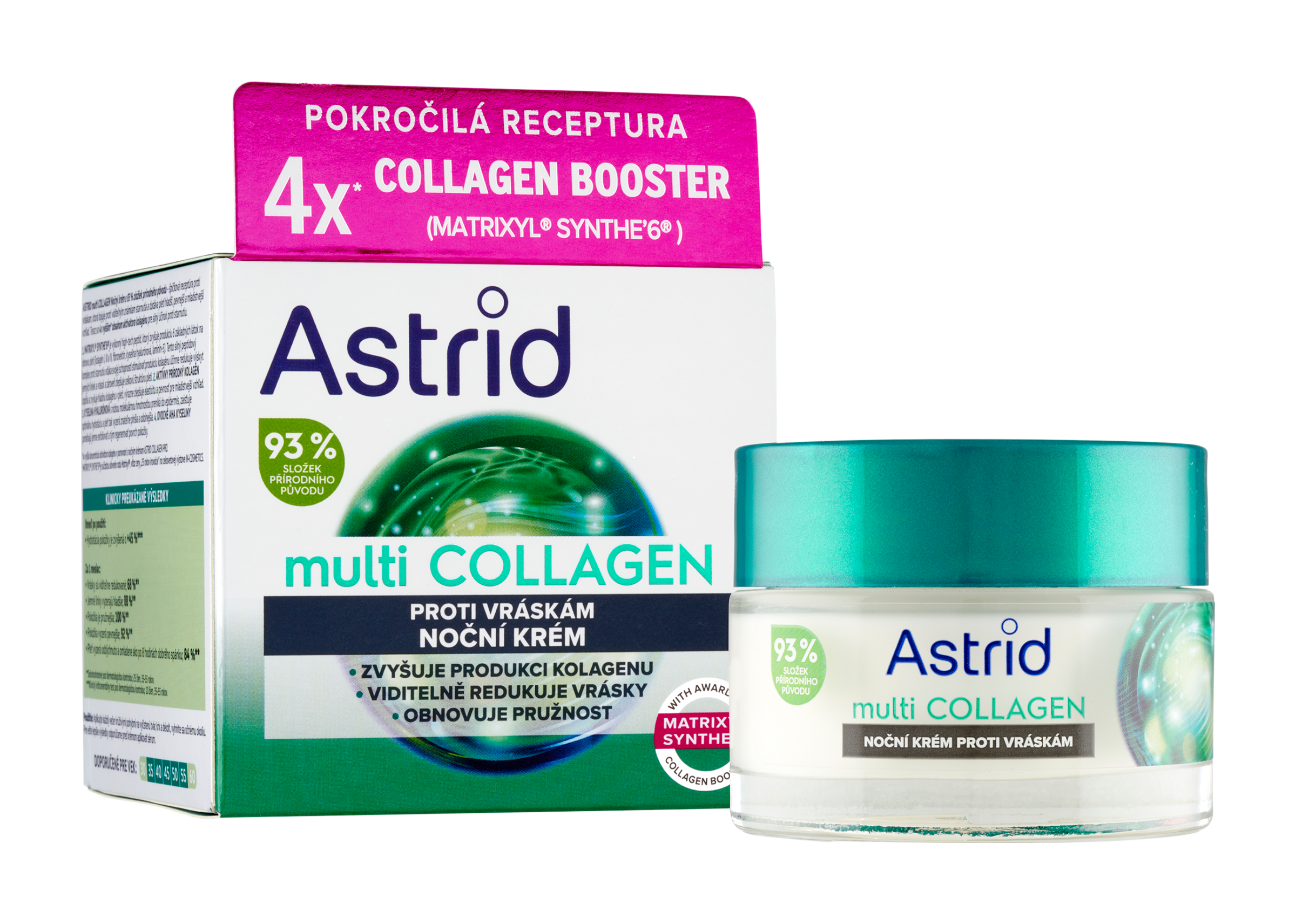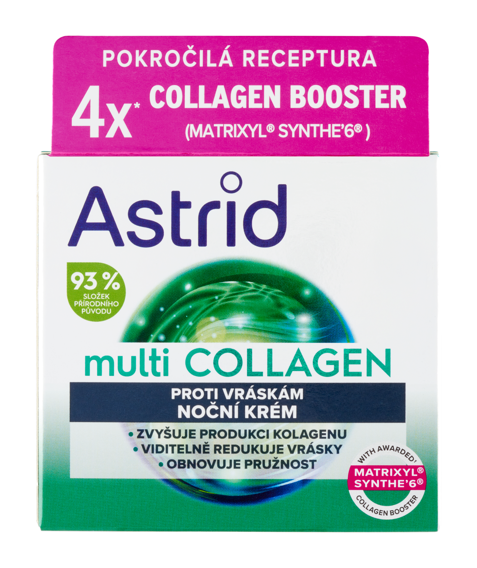 Noční krém Multi Collagen s 93 % přírodních složek intenzivně působí během noci, kdy pleť regeneruje a obnovuje její pevnost. Pokročilé složení s aktivátorem kolagenu podporuje vyhlazení jemných vrásek a zlepšuje celkovou strukturu pleti. Výživné složky pomáhají udržovat optimální hydrataci a pružnost, zatímco ovocné AHA kyseliny jemně exfoliují a přispívají k přirozené obnově pokožky. Ráno je pleť svěží, vyhlazená a připravená na nový den.
