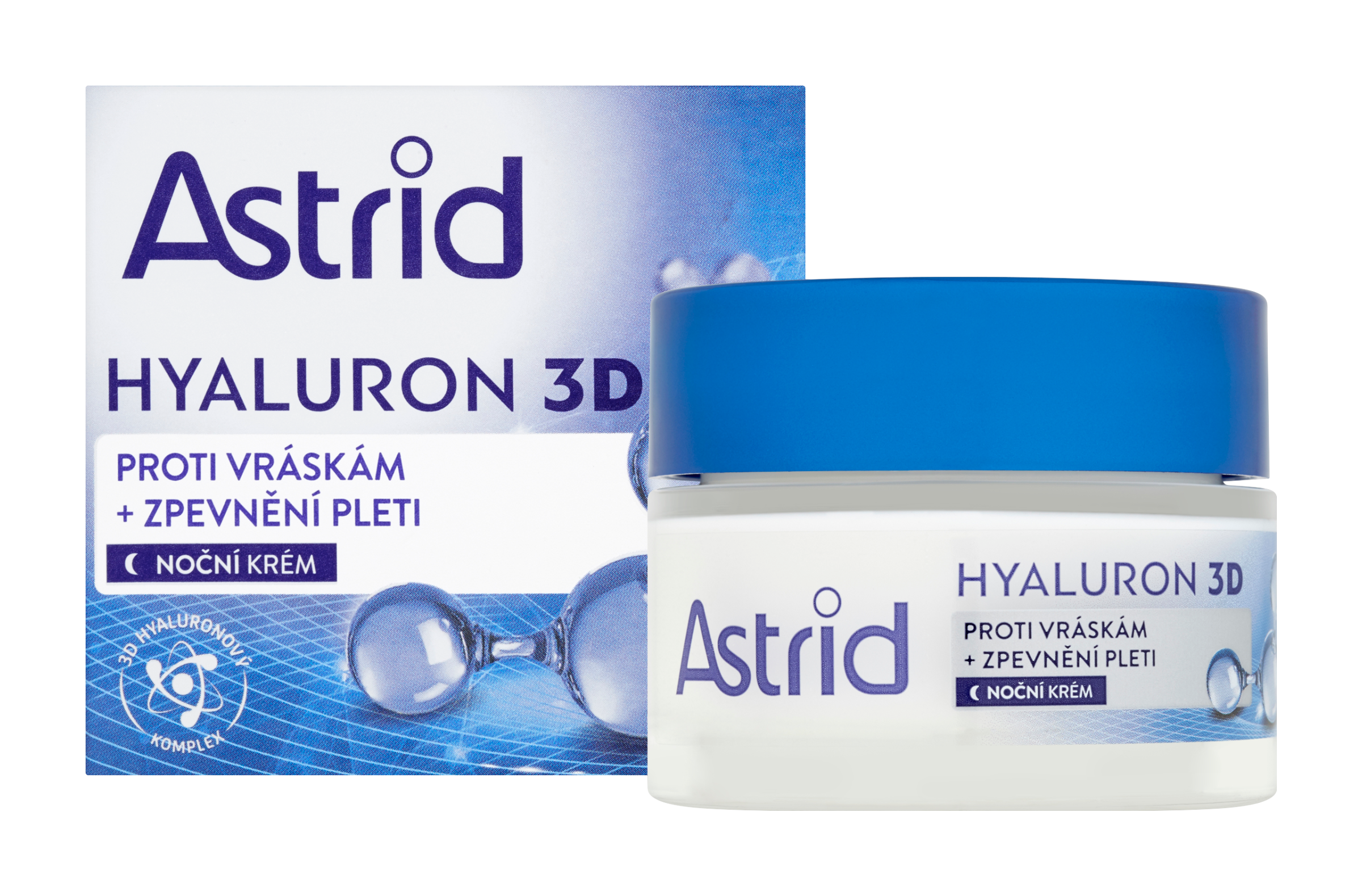 Hyaluron 3D zpevňující noční krém proti vráskám pomáhá redukovat vrásky, viditelně zlepšuje pevnost a pružnost pleti a přispívá k udržení optimální úrovně hydratace v pokožce.