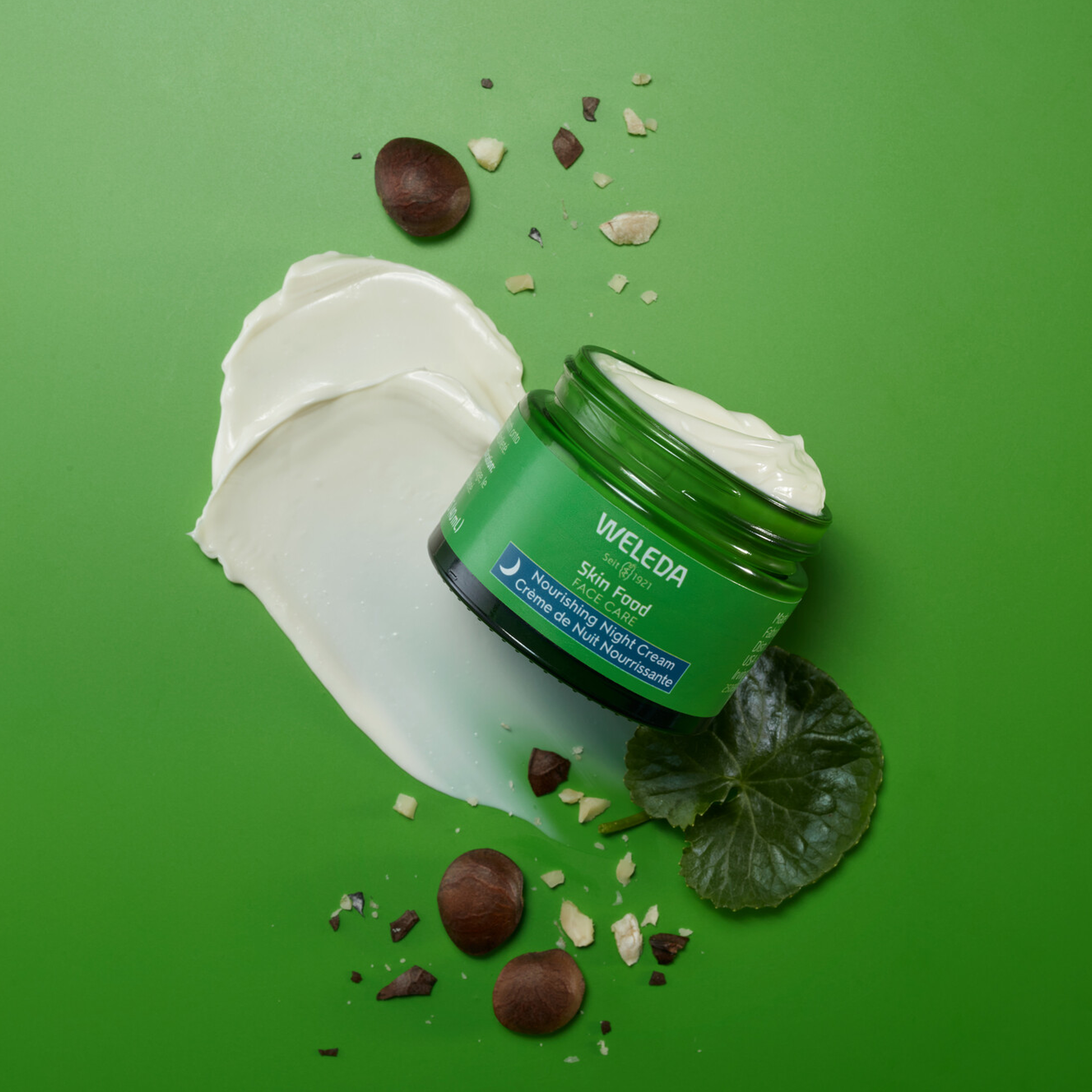 Bohatý výživný krém v sobě spojuje rostlinné výtažky z violky, organického měsíčku, heřmánku a pupečníku asijského. To vše je doplněno o rostlinný skvalan a organický olej sancha inchi. Co umí Ski Food Nourishing Night Cream od Weledy: