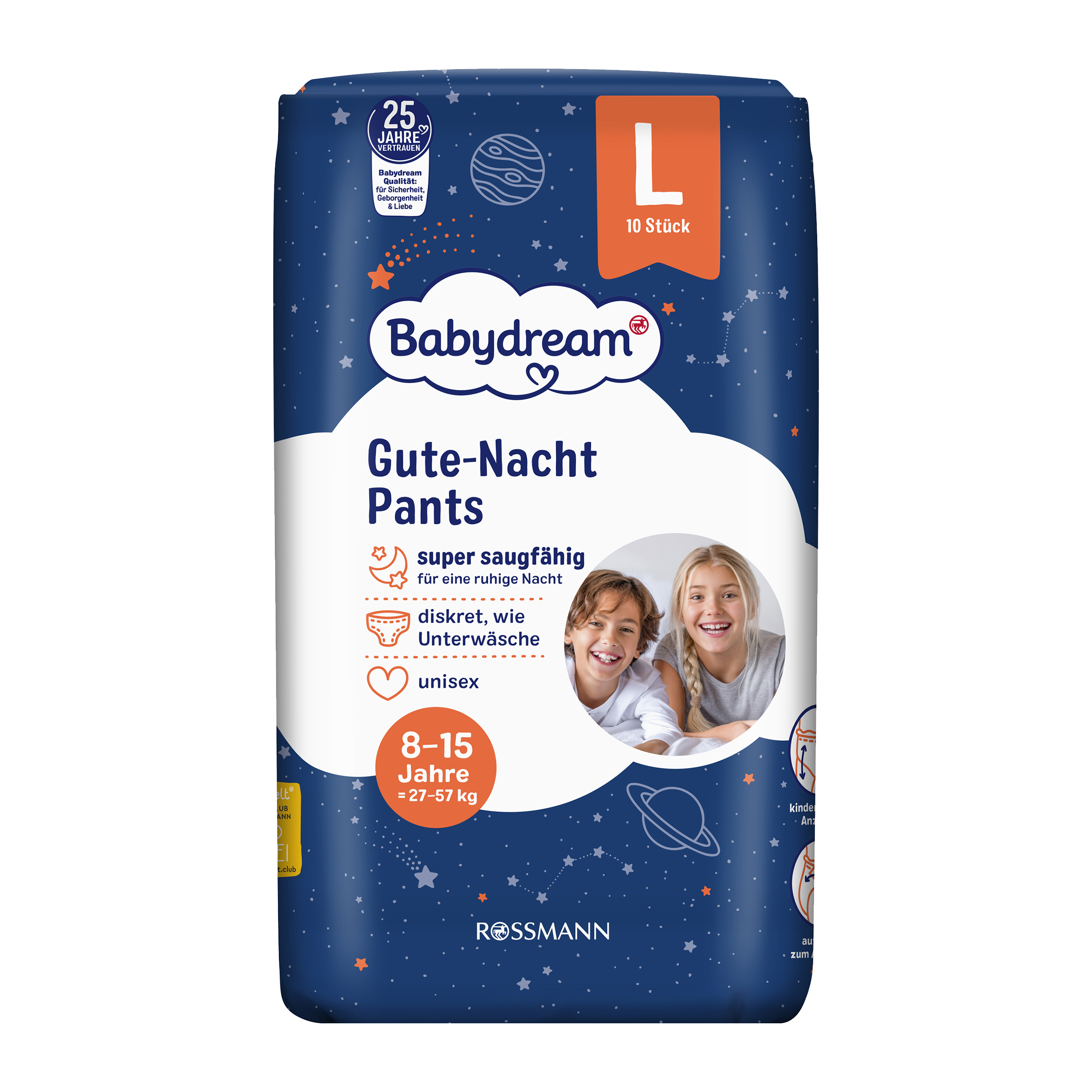 Praktické a diskrétní: Pro klidnou a bezstarostnou noc si vaše dítě může jednoduše obléci naše noční kalhotky Babydream jako spodní prádlo. Po použití lze noční kalhotky jednoduše roztrhnout v bočních švech.