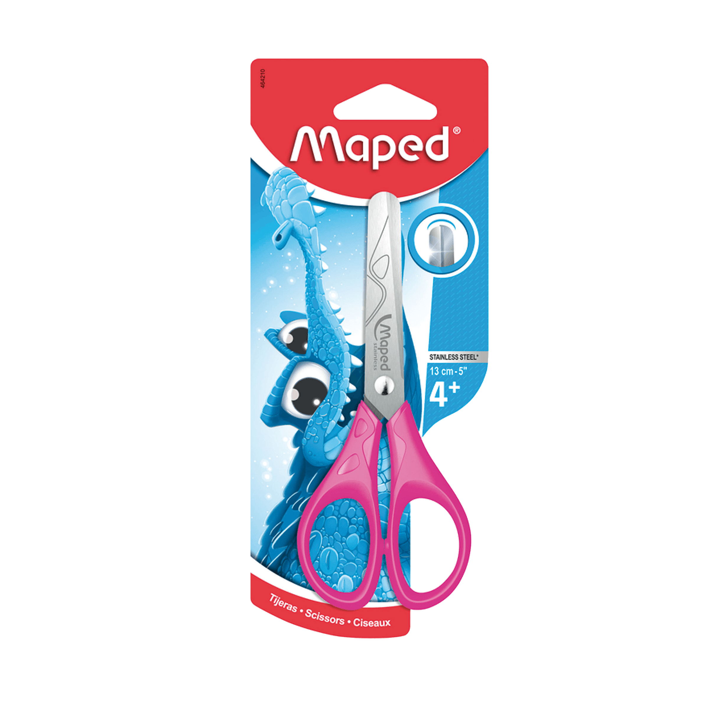 Nůžky Maped Essentials Pulse o délce 13 cm mají symetrické rukojeti, čepele z broušené nerezové oceli a zaoblené špičky.