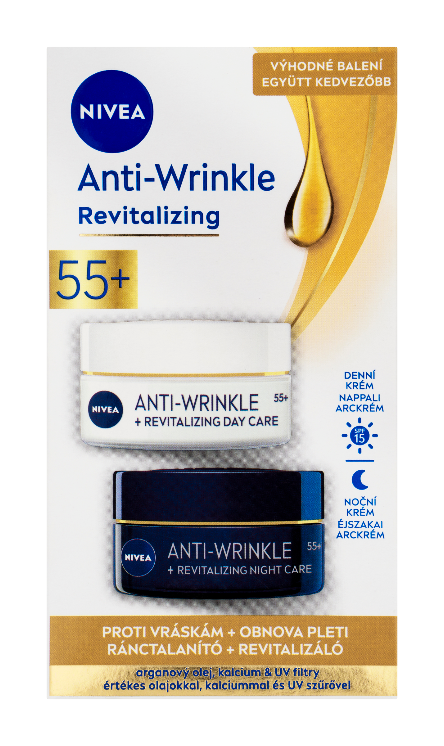 Nivea® Obnovující denní krém proti vráskám 55+ Zlepšuje vitalitu zralé pleti a bojuje proti vráskám zevnitř. Složení s arganovým olejem, kalciem a UV filtry.