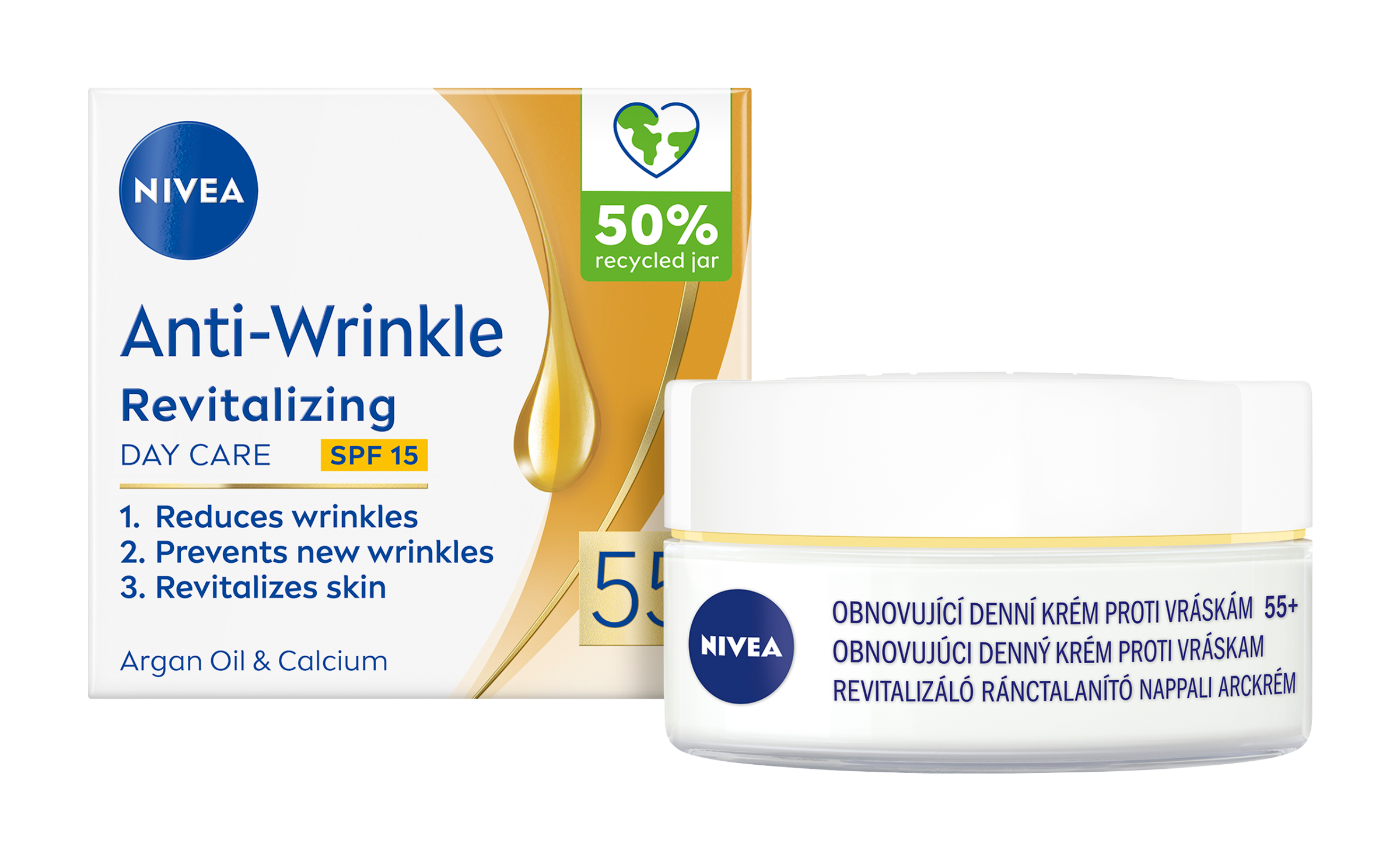Nivea® Obnovující denní krém proti vráskám 55+ s přírodním arganovým olejem a kalciem: