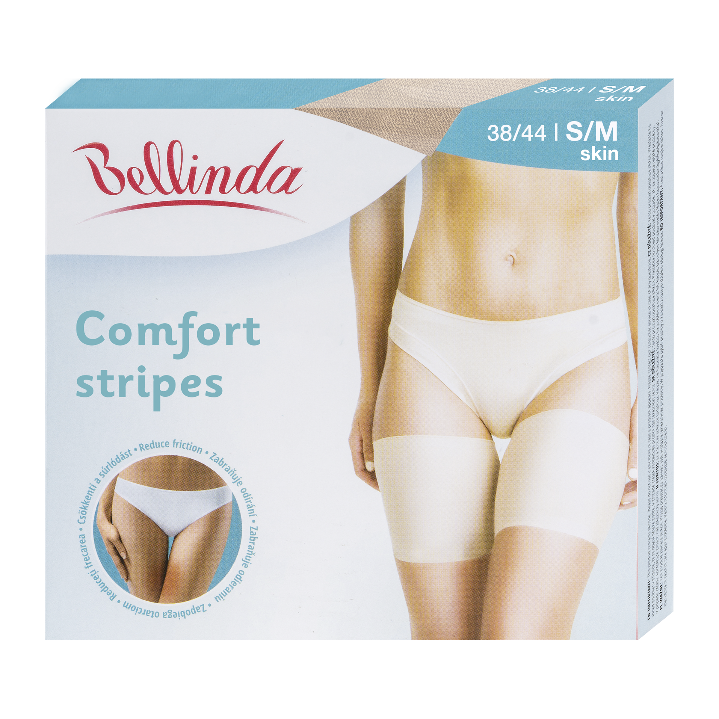 Comfort Stripes – ochranné pásy na stehna, hladké bezešvé okraje nezanechávají otisky na těle a díky tomu jsou i neviditelné pod oblečením, perfektně drží díky silikonovým proužkům po okrajích. Vel. S/M.