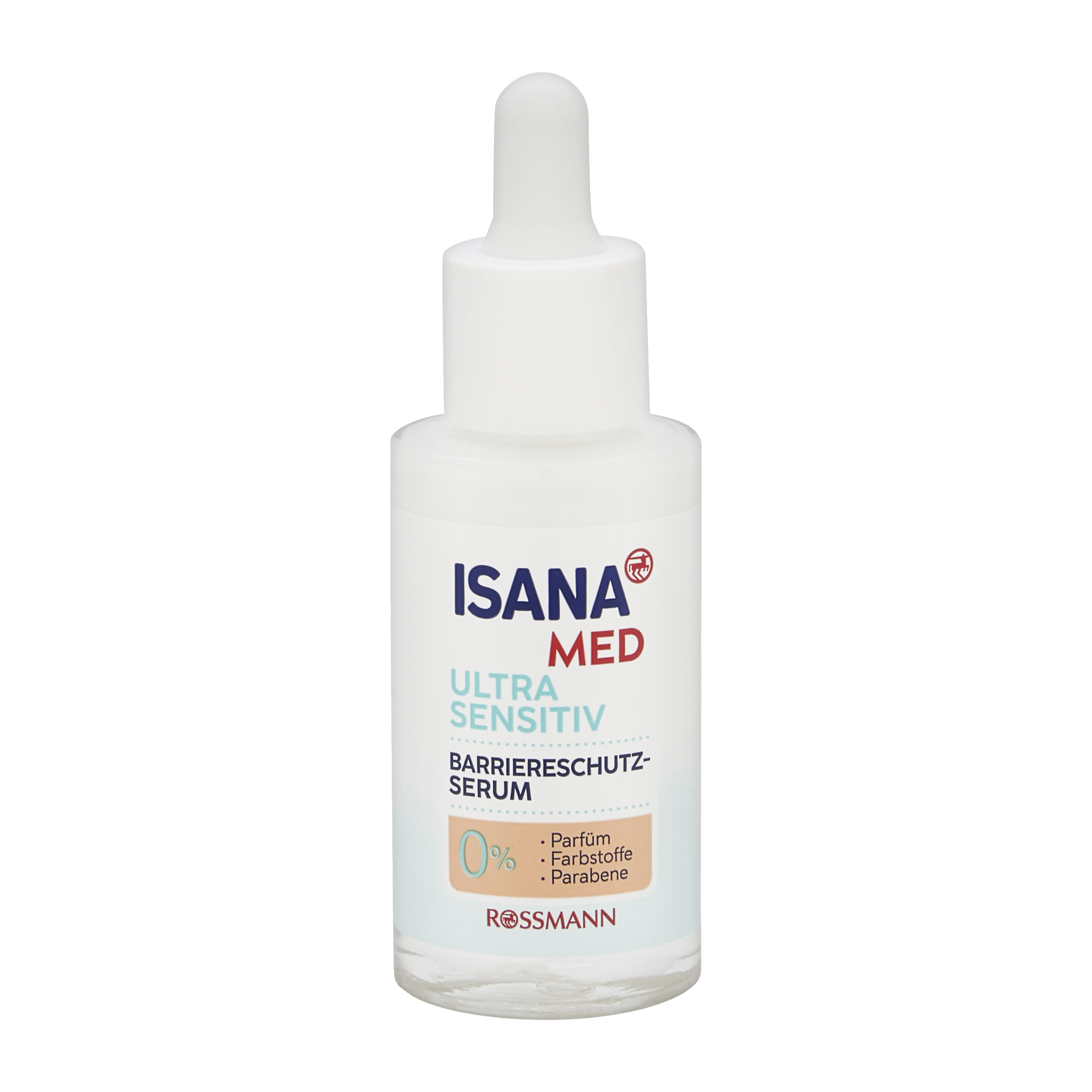 Pleťové sérum Isana Med má zklidňující účinek na namáhanou a podrážděnou pleť. SOS Sensitive Complex s panthenolem, alantoinem a pupalkovým olejem podporuje kožní bariéru, zmírňuje pocity napětí a svědění a redukuje zarudnutí.
