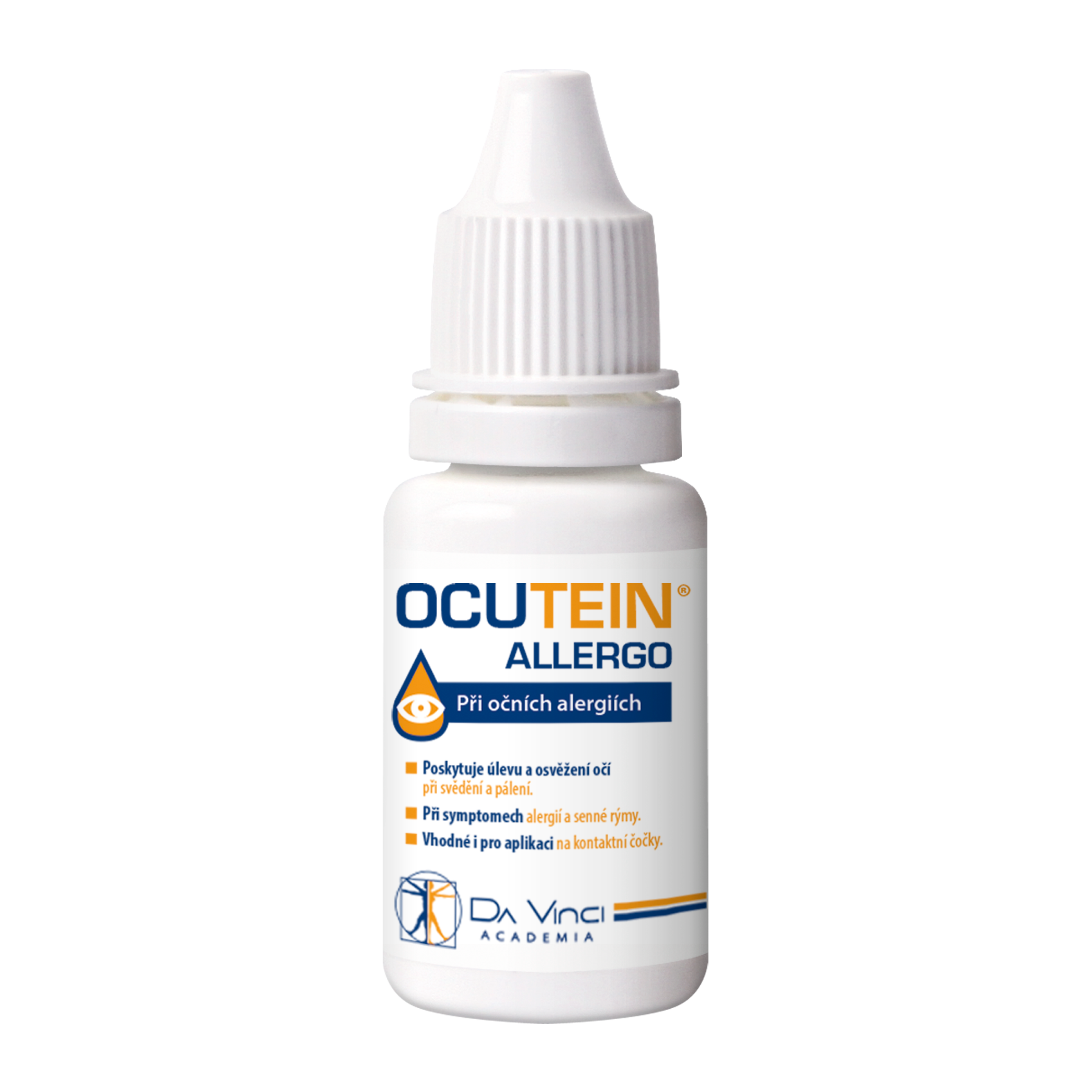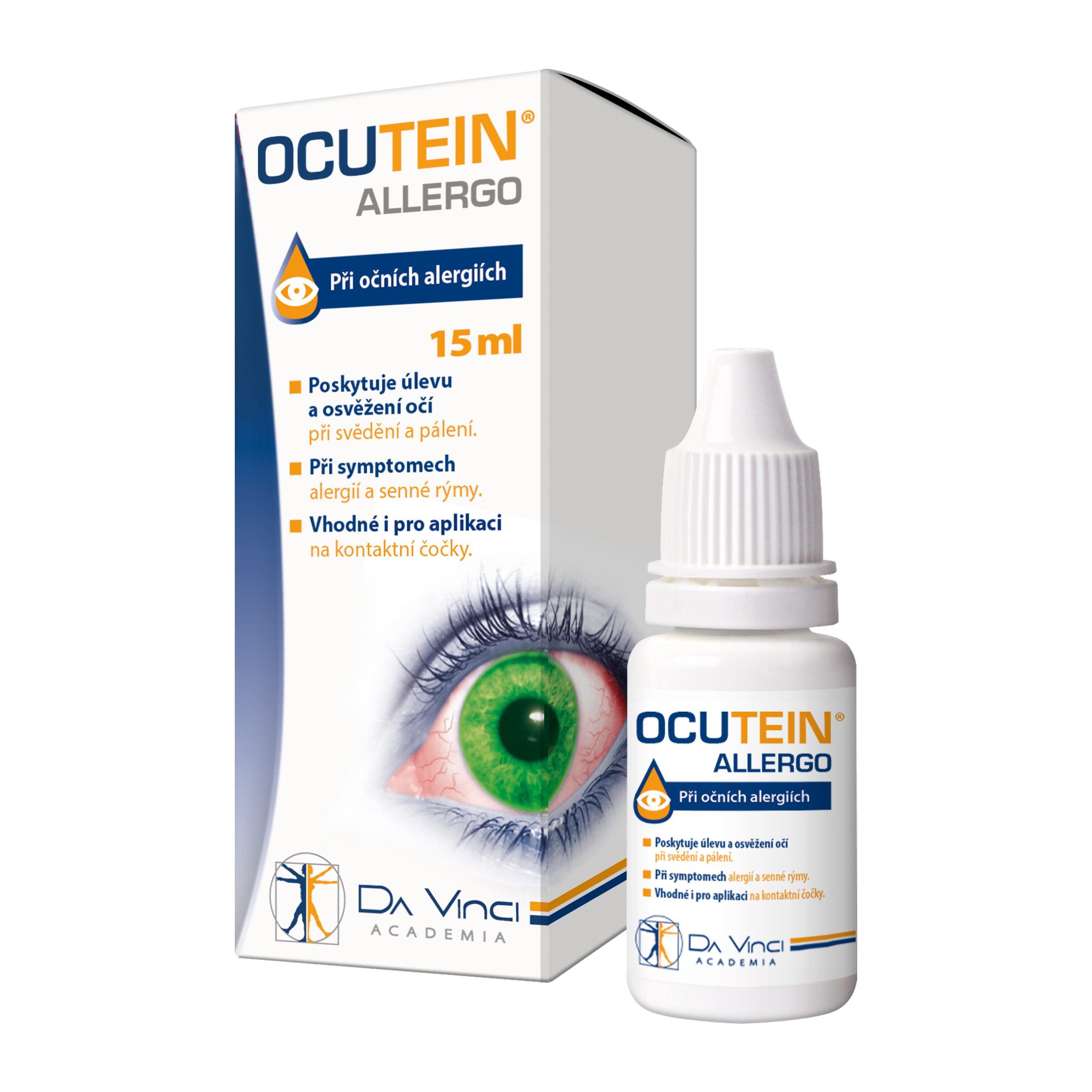 OCUTEIN® ALLERGO, zdravotnický prostředek, jsou hydratační a lubrikační oční kapky, které poskytují úlevu a osvěžení očí při symptomech alergií a senné rýmy.