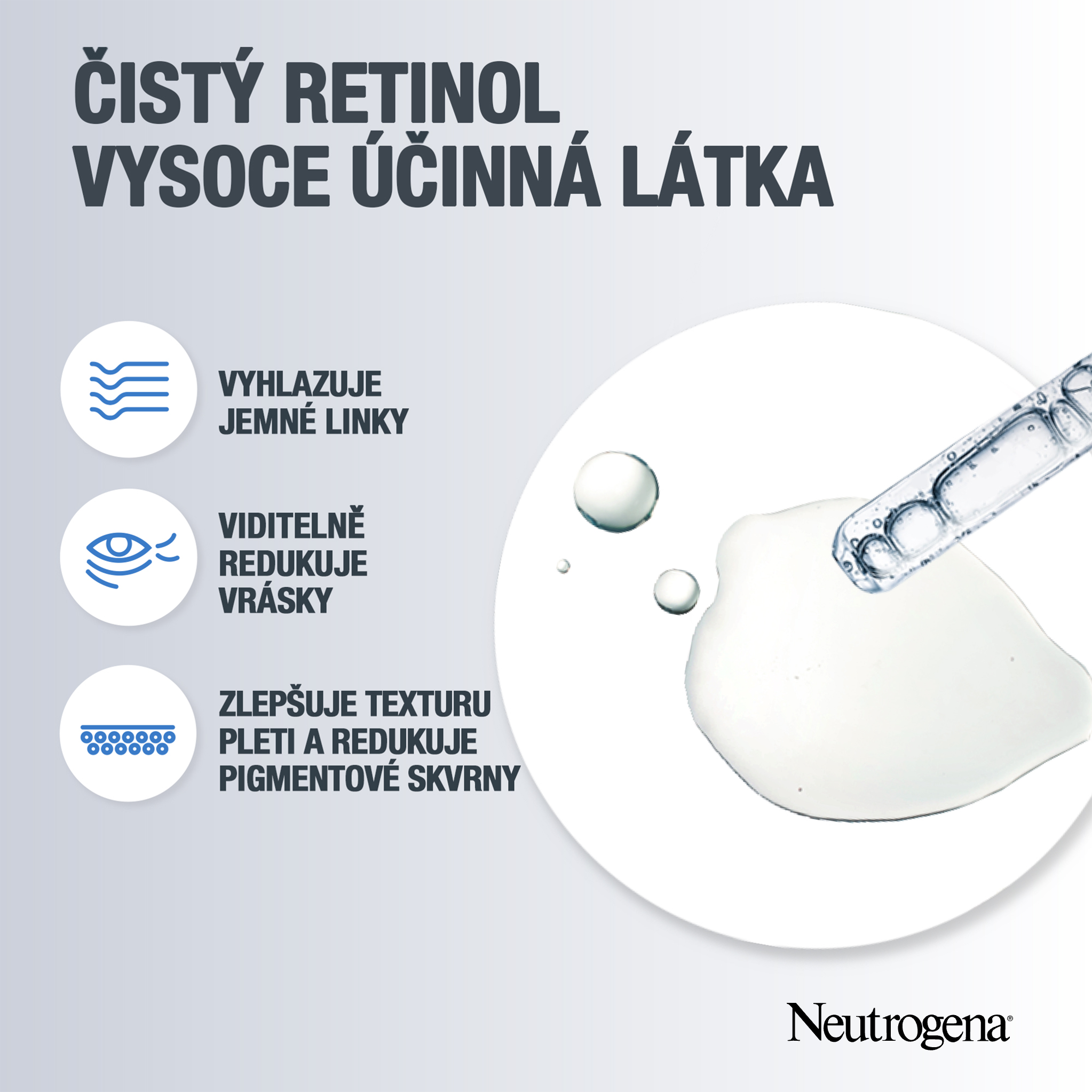 Čistý retinol je dermatologicky ověřená forma vitaminu A. Zlepšuje vzhled jemných linek, mdlosti, vrásek, nerovnoměrného tónu pleti a pigmentových skvrn. Naše účinné a zároveň šetrné složení kombinuje čistý retinol s: