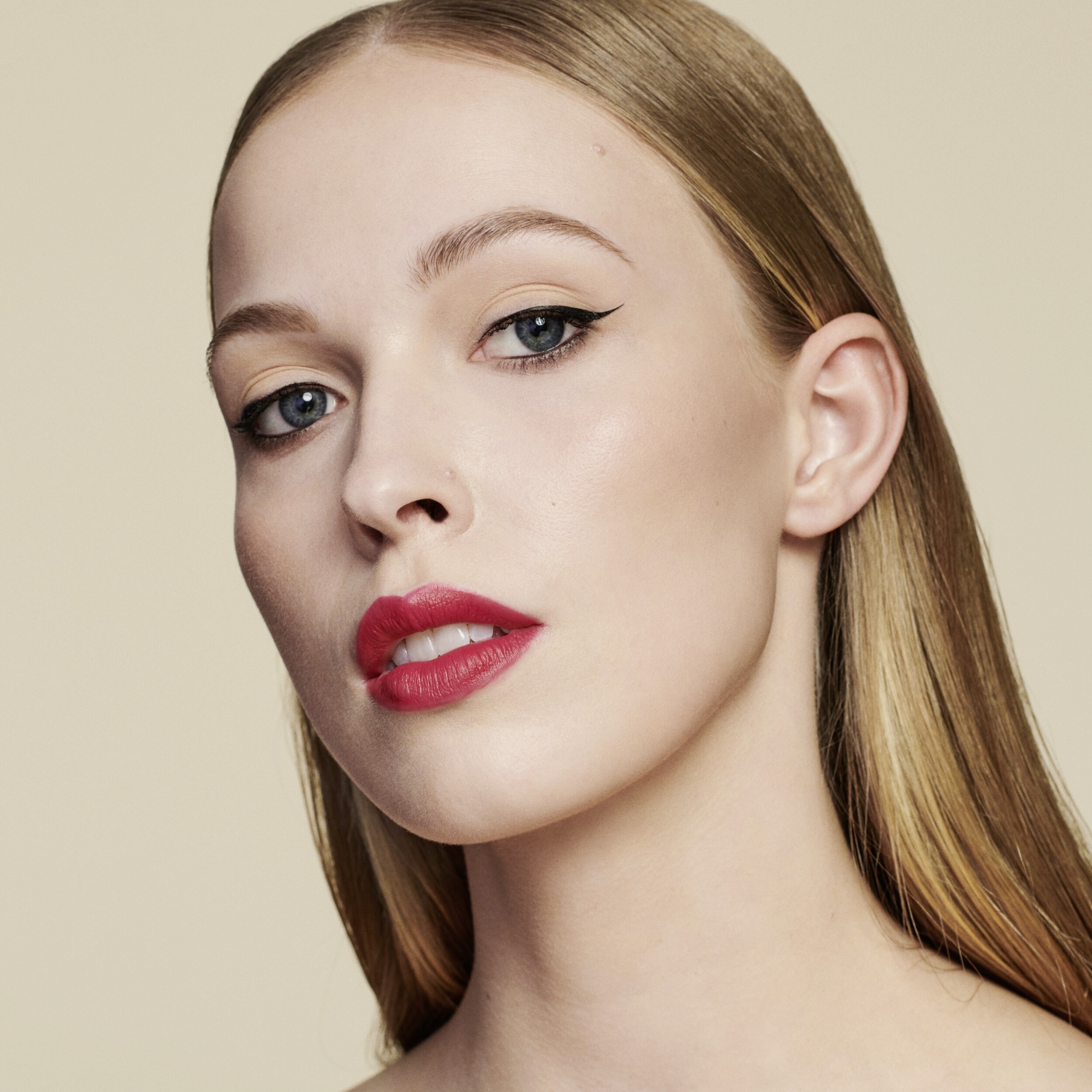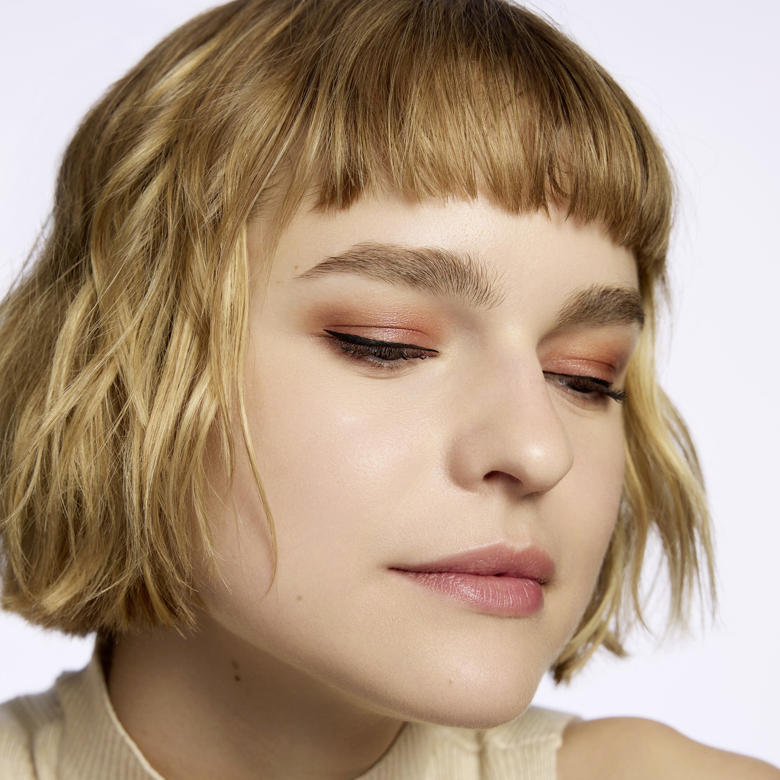 Začněte u vnitřního koutku oka a jedním tahem namalujte oční linku podél linie řas. Pro dosažení rovnoměrného výsledku držte ruku stabilně tak, že loket opřete o rovný povrch. Chcete-li vytvořit bezchybný ocásek, použijte malé tahy a kreslete postupně.