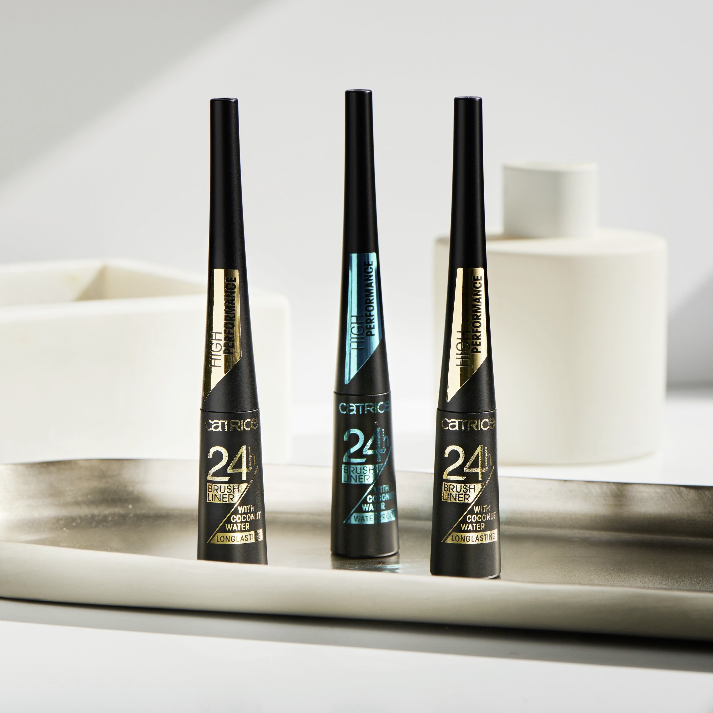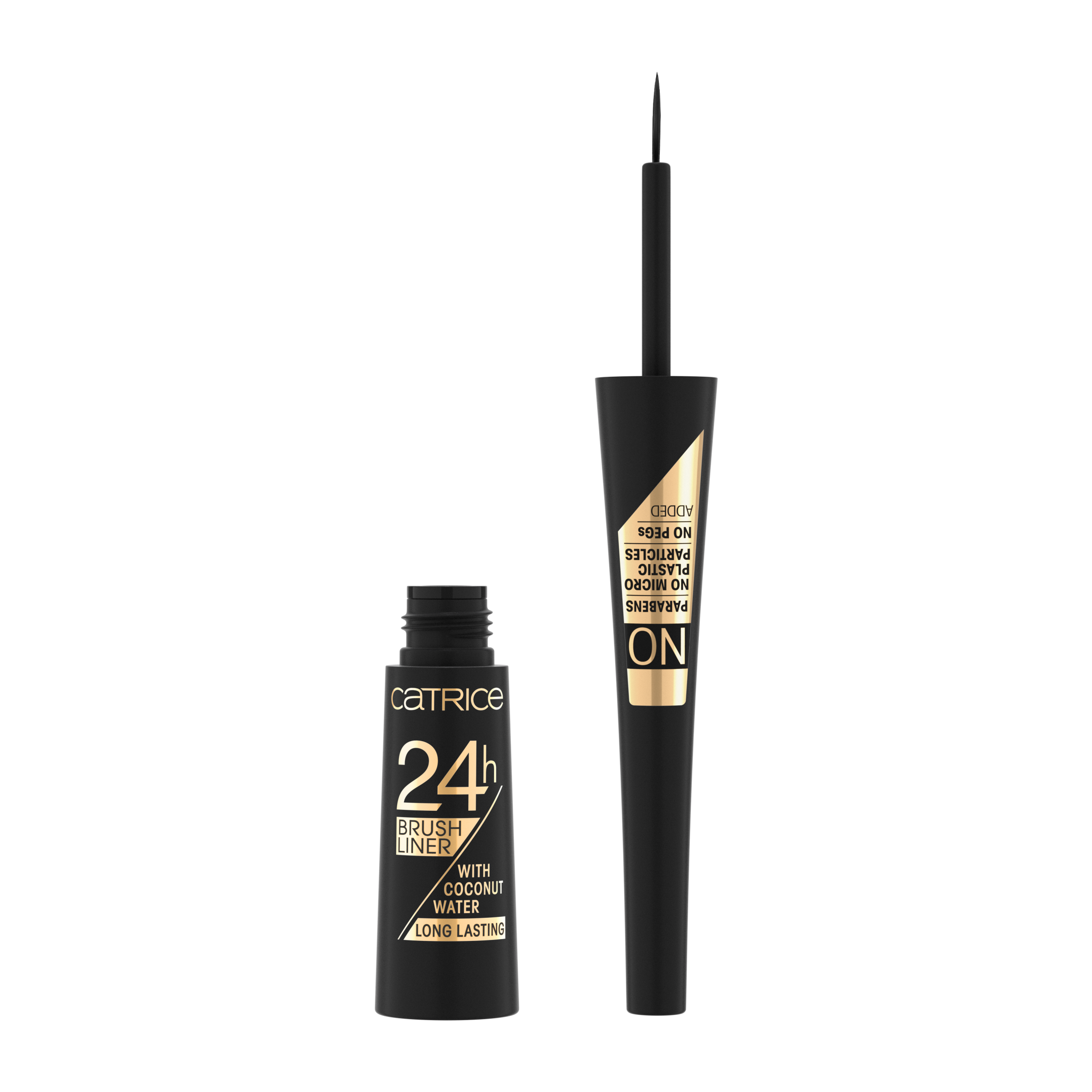 Tekuté oční linky 24h Brush Liner vám usnadní aplikaci přesné linky a navíc nabízí vyživující péči a složení bez parabenů, mikroplastů a PEGů. Díky flexibilnímu a jemnému aplikátoru lze tmavě černou texturu nanést velmi přesně podél linie řas – díky tomu můžete snadno vytvořit jemné styly očních linek i dramatický efekt. Veganské složení s dlouhotrvajícím efektem až po 24 hodin s hydratační kokosovou vodou zanechává nádherný matný finiš.