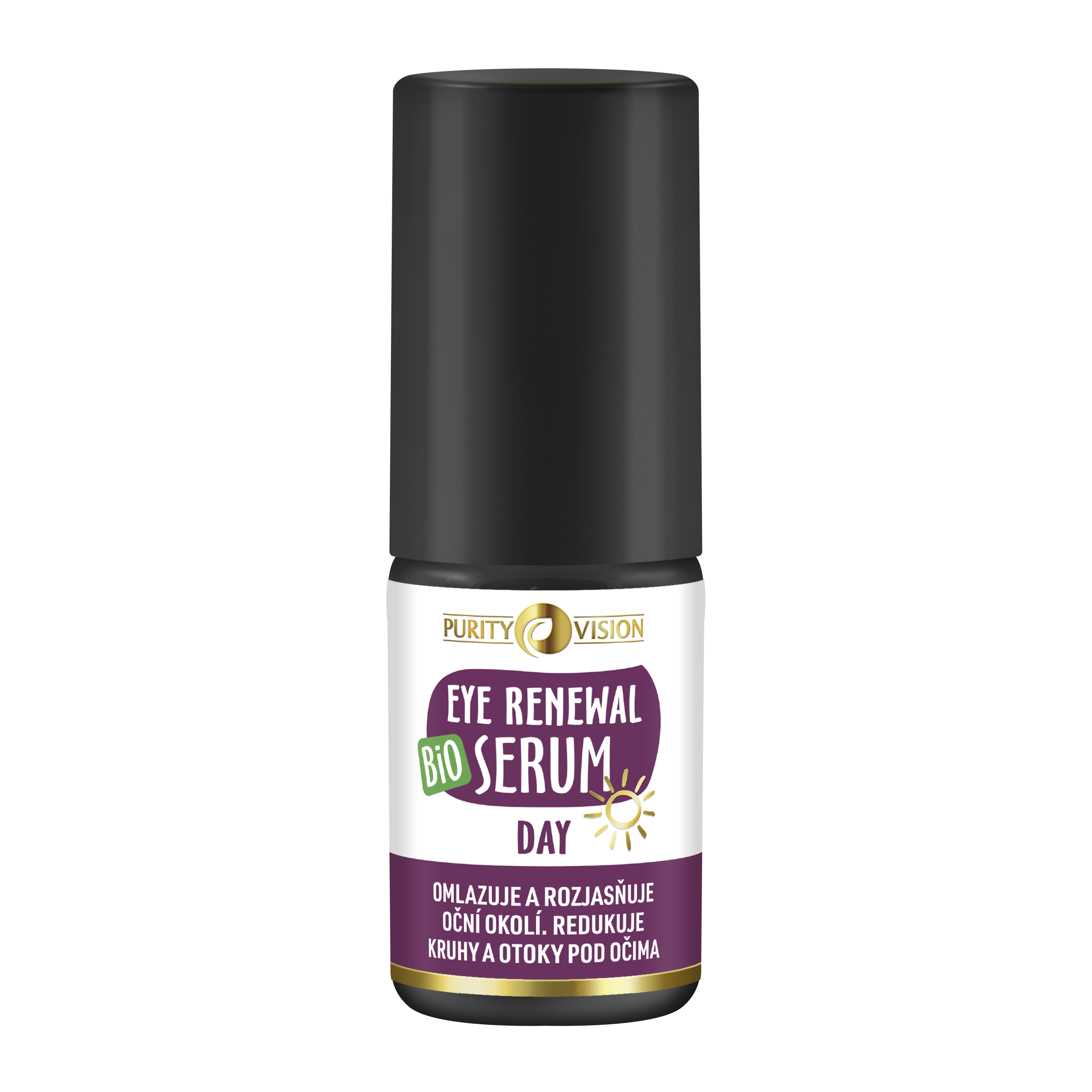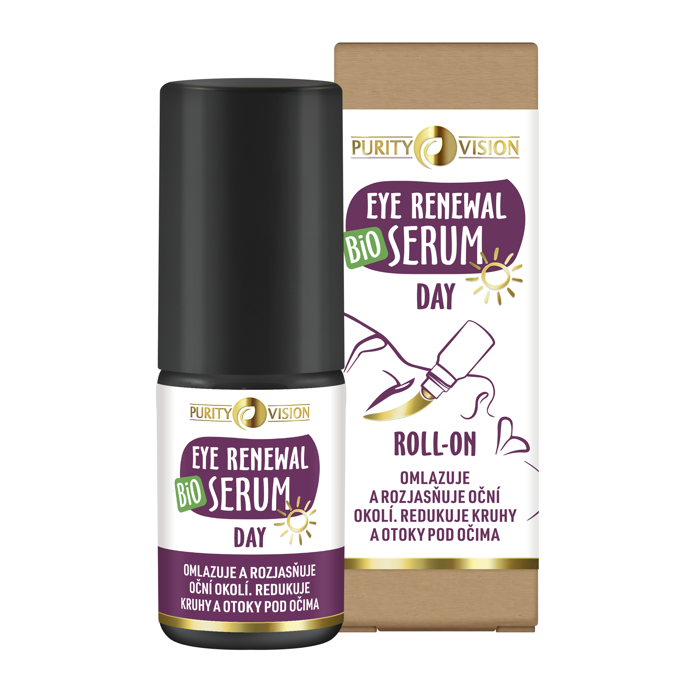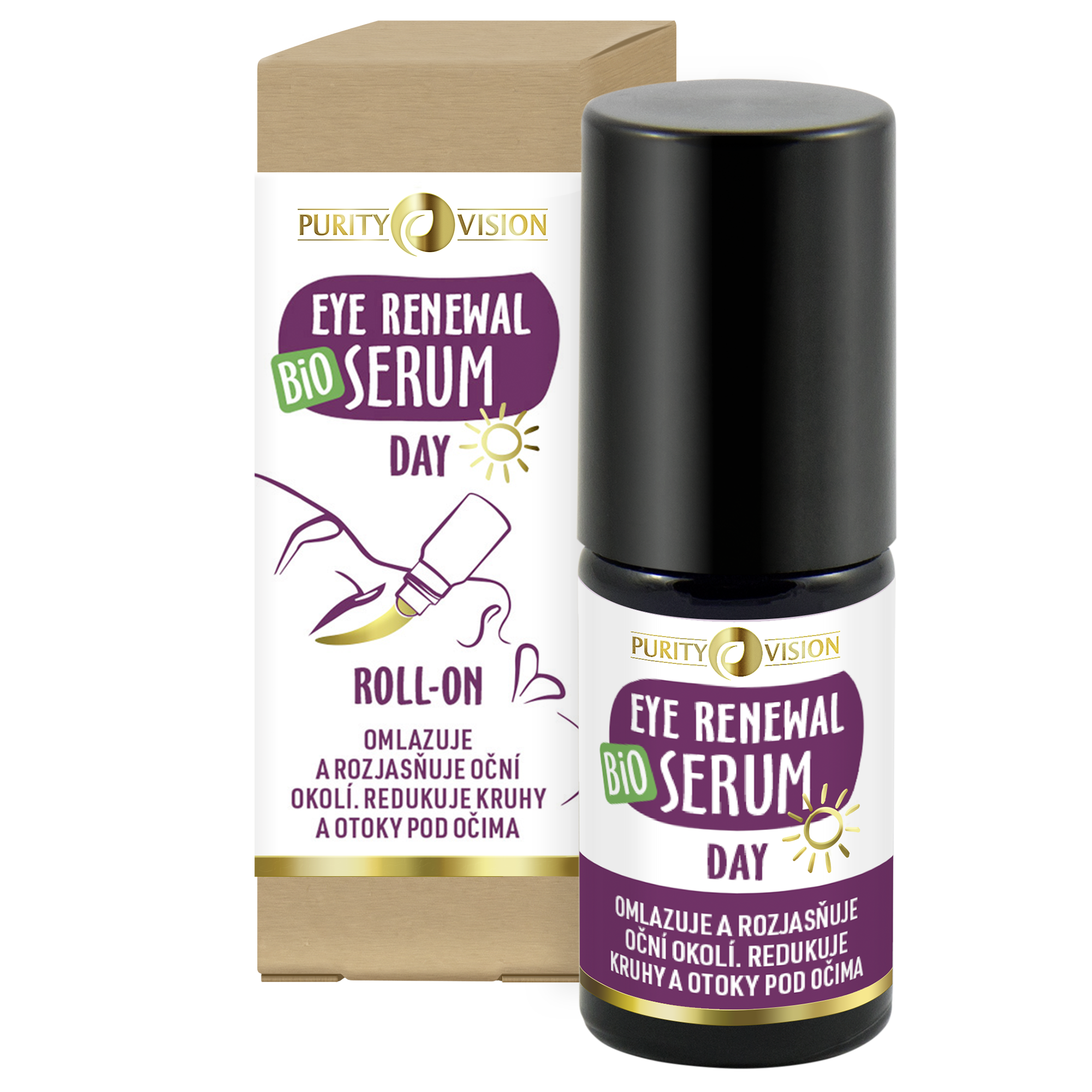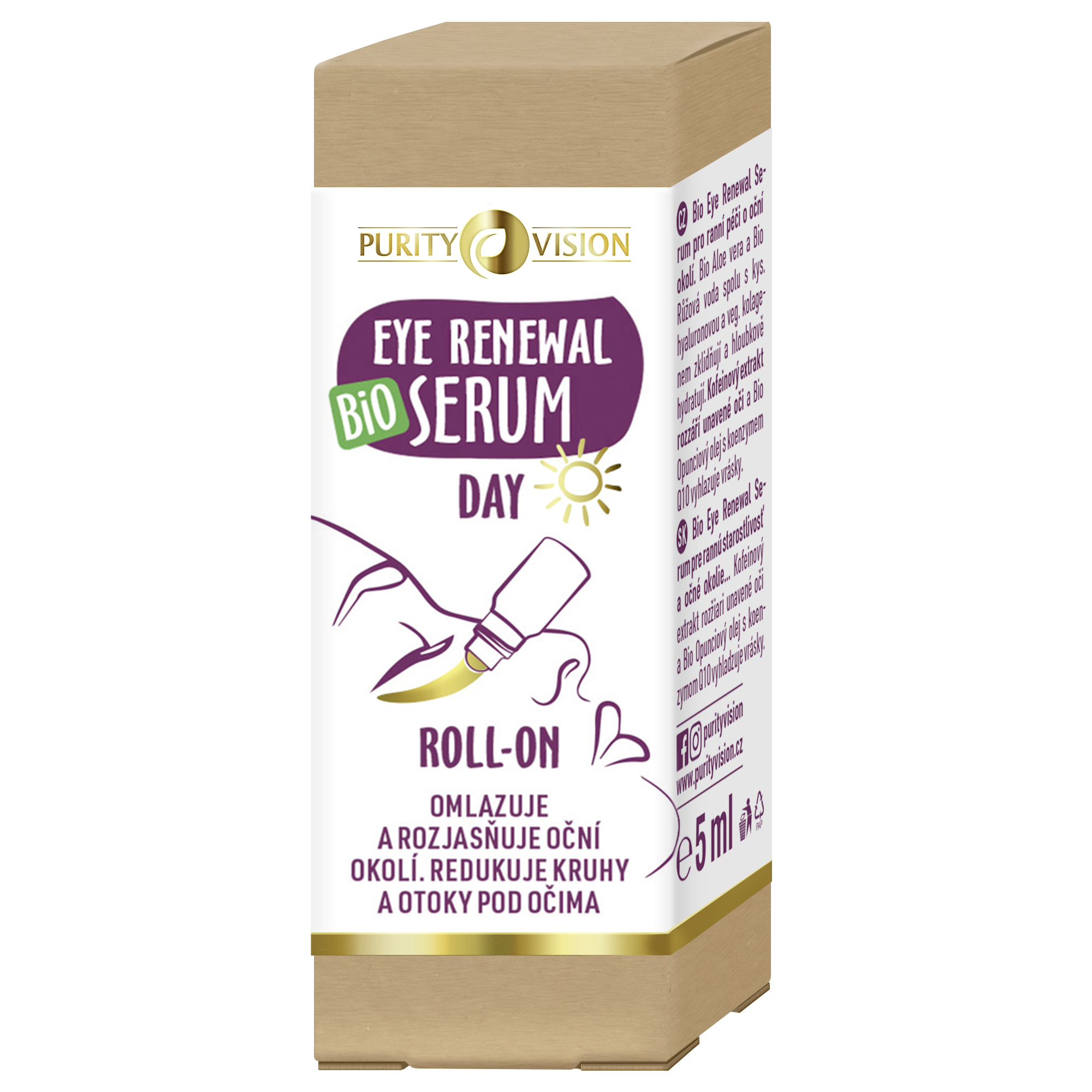 Omlazuje a rozjasňuje oční okolí. Redukuje kruhy a otoky pod očima. Bio Eye Renewal Serum pro ranní péči o oční okolí. Bio Aloe vera a Bio Růžová voda spolu s kys. hyaluronovou a veg. kolagenem zklidňují a hloubkově hydratují. Kofeinový extrakt rozzáří unavené oči a Bio Opunciový olej s koenzymem Q10 vyhlazuje vrásky.