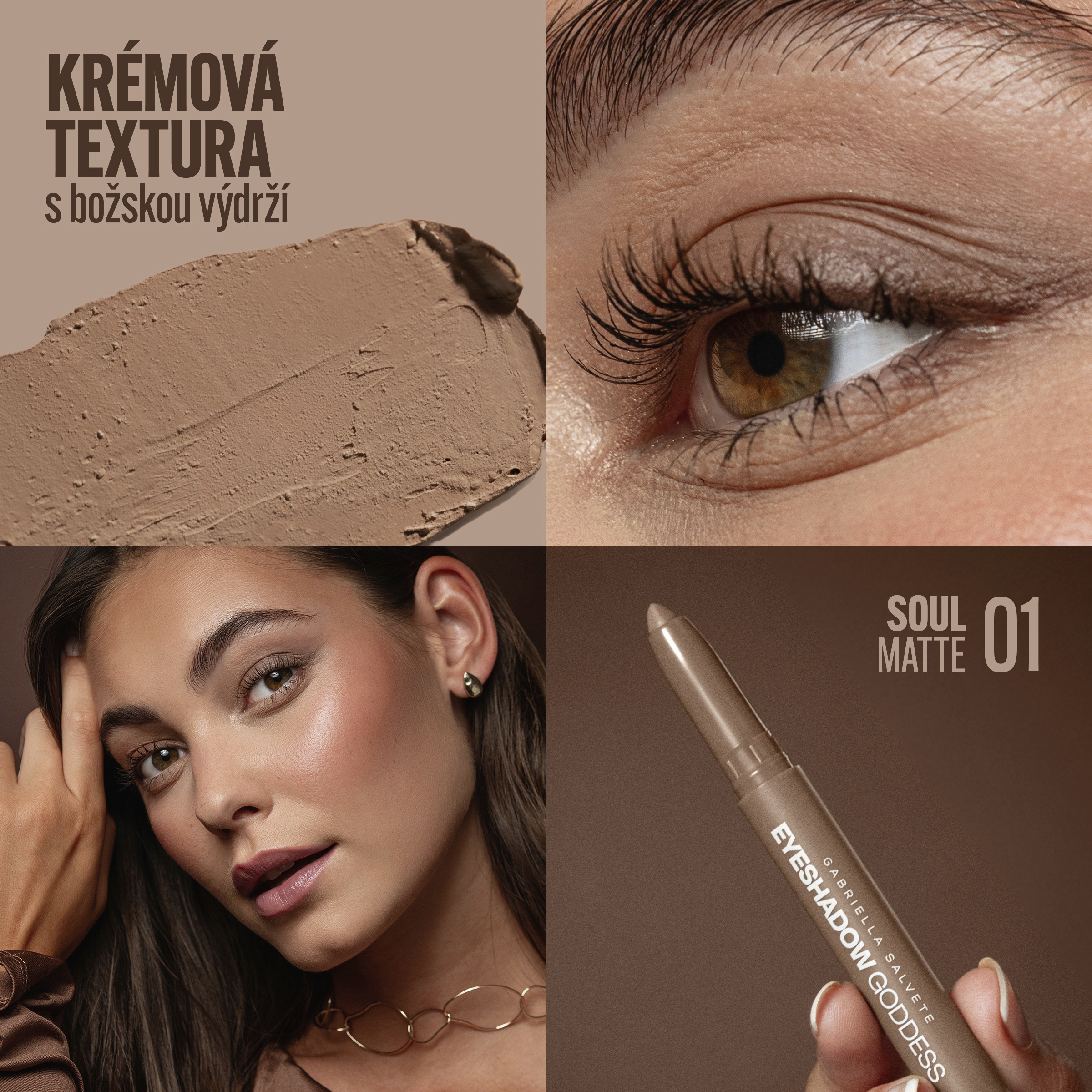 Benefity očních stínů v tužce Goddess Matte 01 Soul: