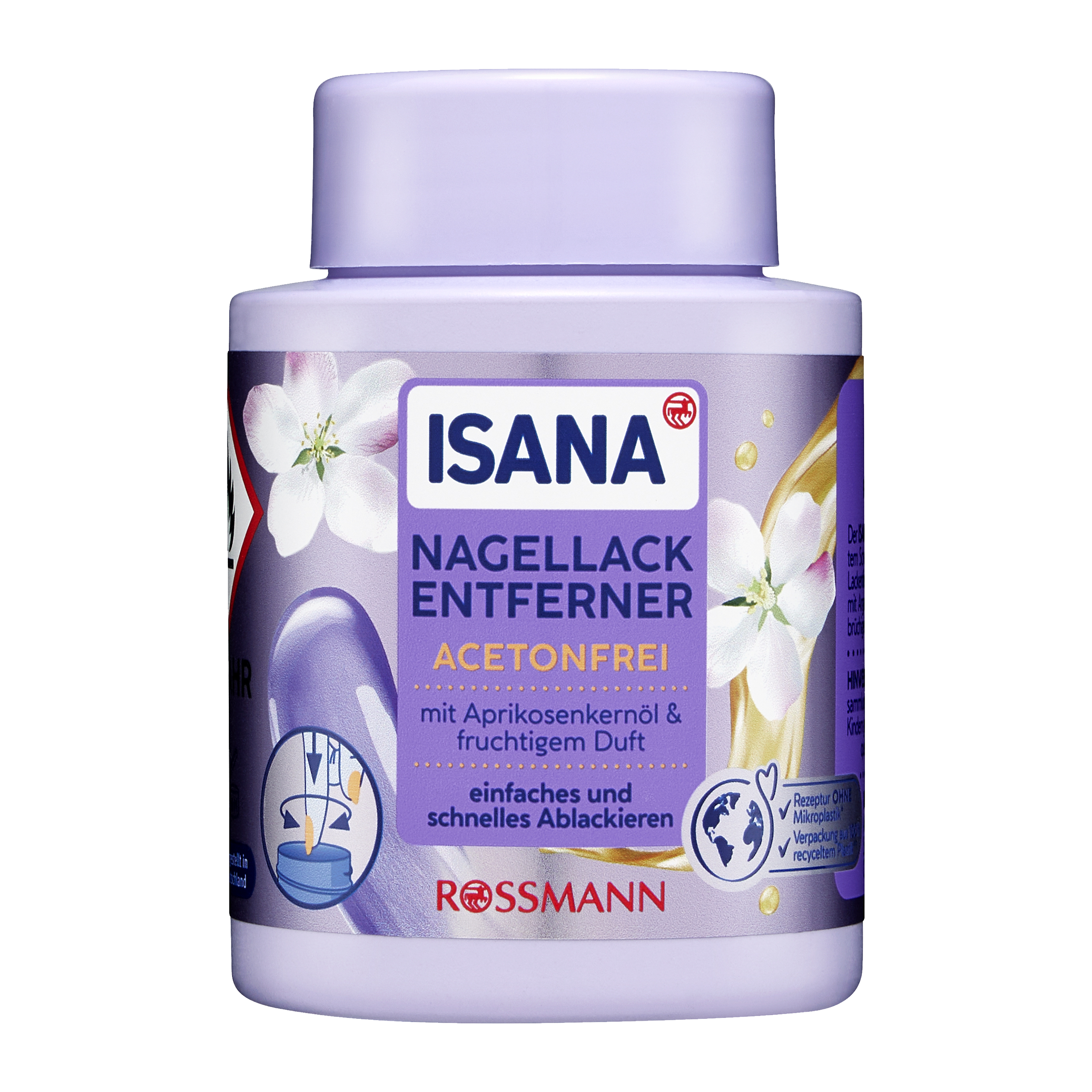 Odlakovač ISANA s integrovanou houbičkou je určen k rychlému a důkladnému odstranění laku na nehty. Vysoce kvalitní složení s arganovým olejem a olejem z meruňkových jader je ideální i pro lámavé nehty. Vhodný také na umělé nehty.