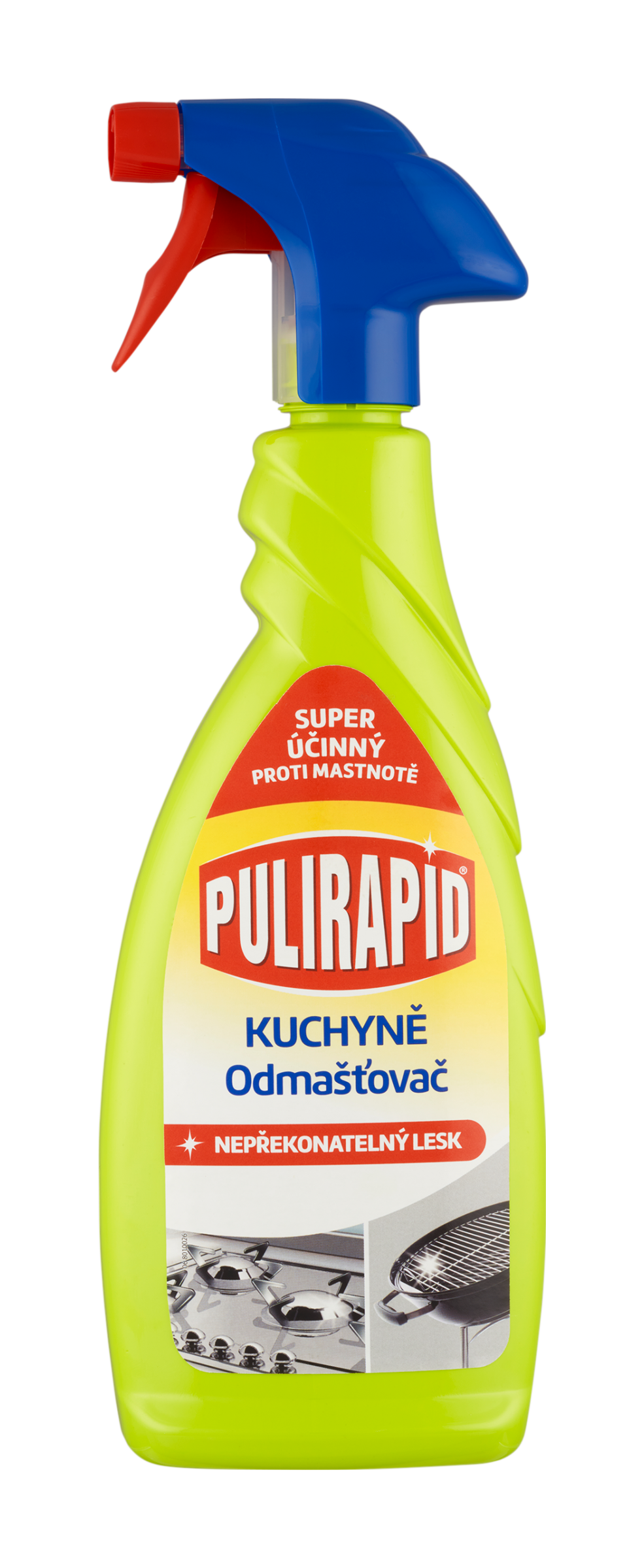 Pulirapid Kuchyně Odmašťovač díky své technologii bez stop a snadnému oplachování zaručuje nepřekonatelný lesk, pokud je používán podle návodu k použití.