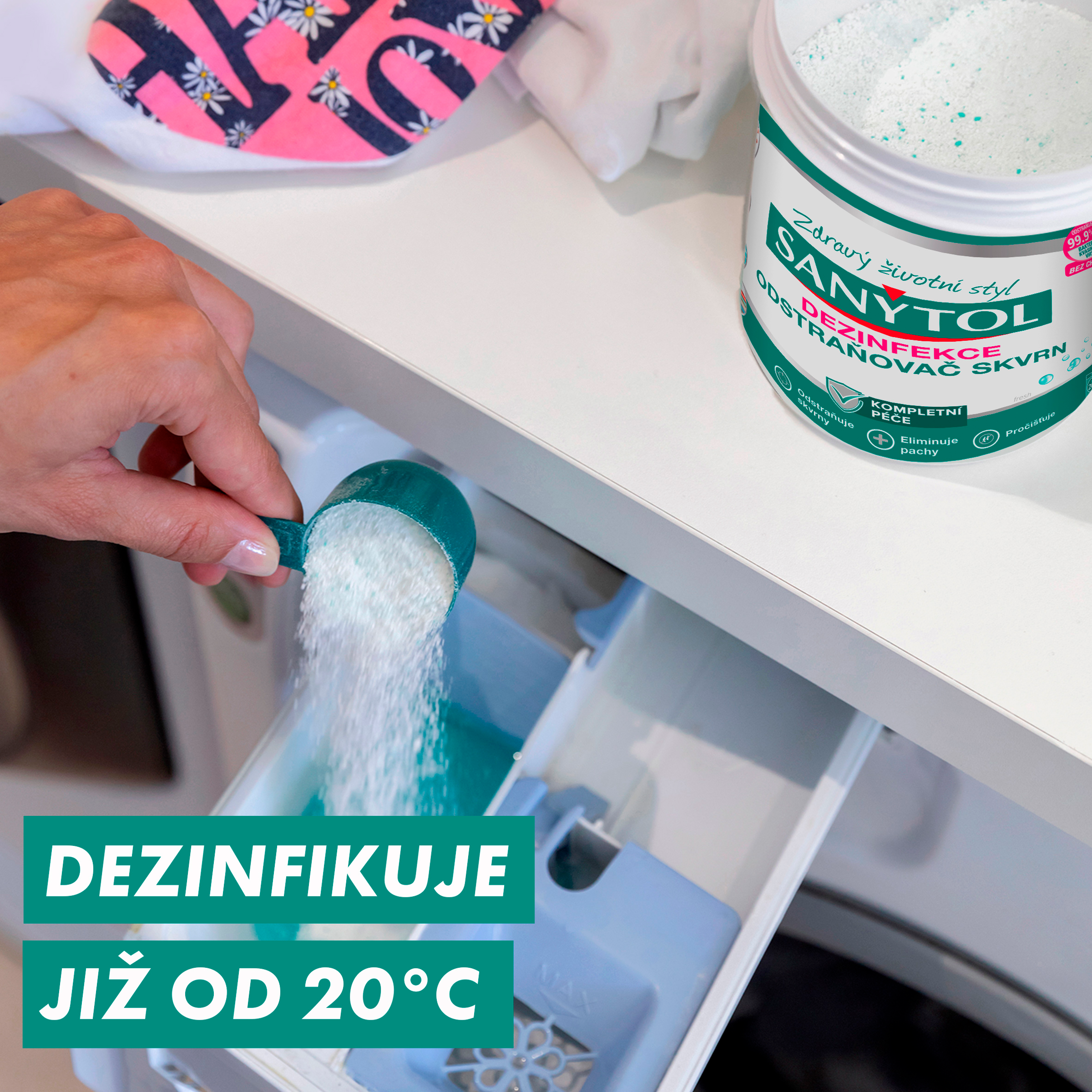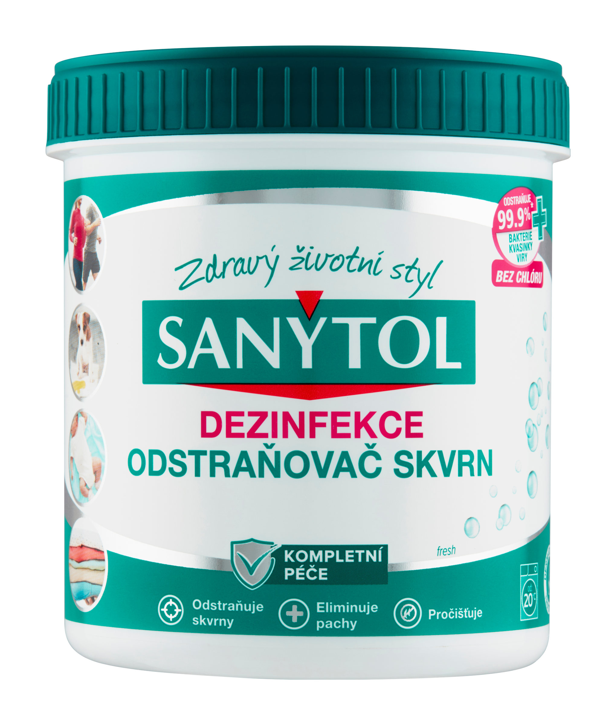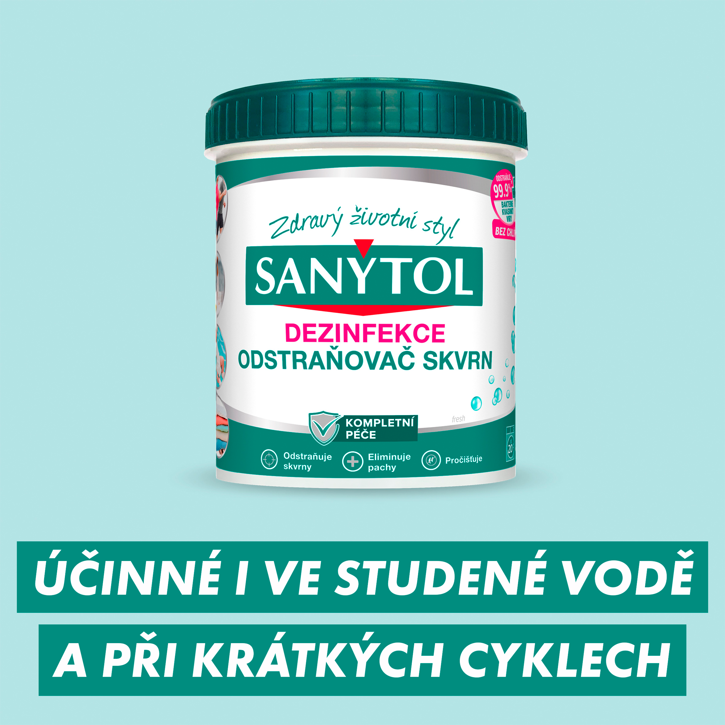 Víte, že... Sanytol dezinfekční odstraňovač skvrn ničí 99,9% bakterií, virů a kvasinek a účinně odstraňuje vytrvalé skvrny již od prací teploty 20°C. Díky složení bohatému na enzymy prostupuje do vnitřku textilních vláken a uvolňuje činidla odstraňující skvrny, čímž dosahuje dokonalých výsledků jak u bílého, tak i u barevného prádla. Odstraňuje 99.9%* bakterie, kvasinky, viry.