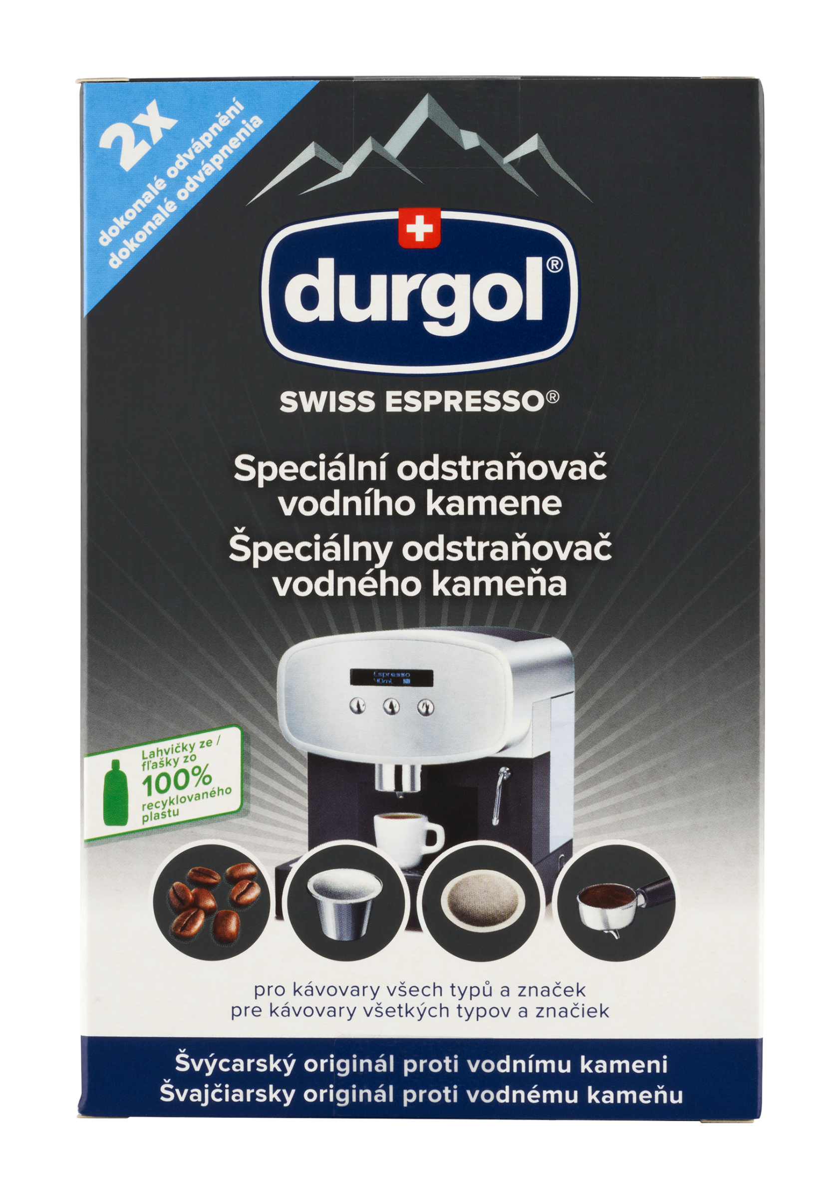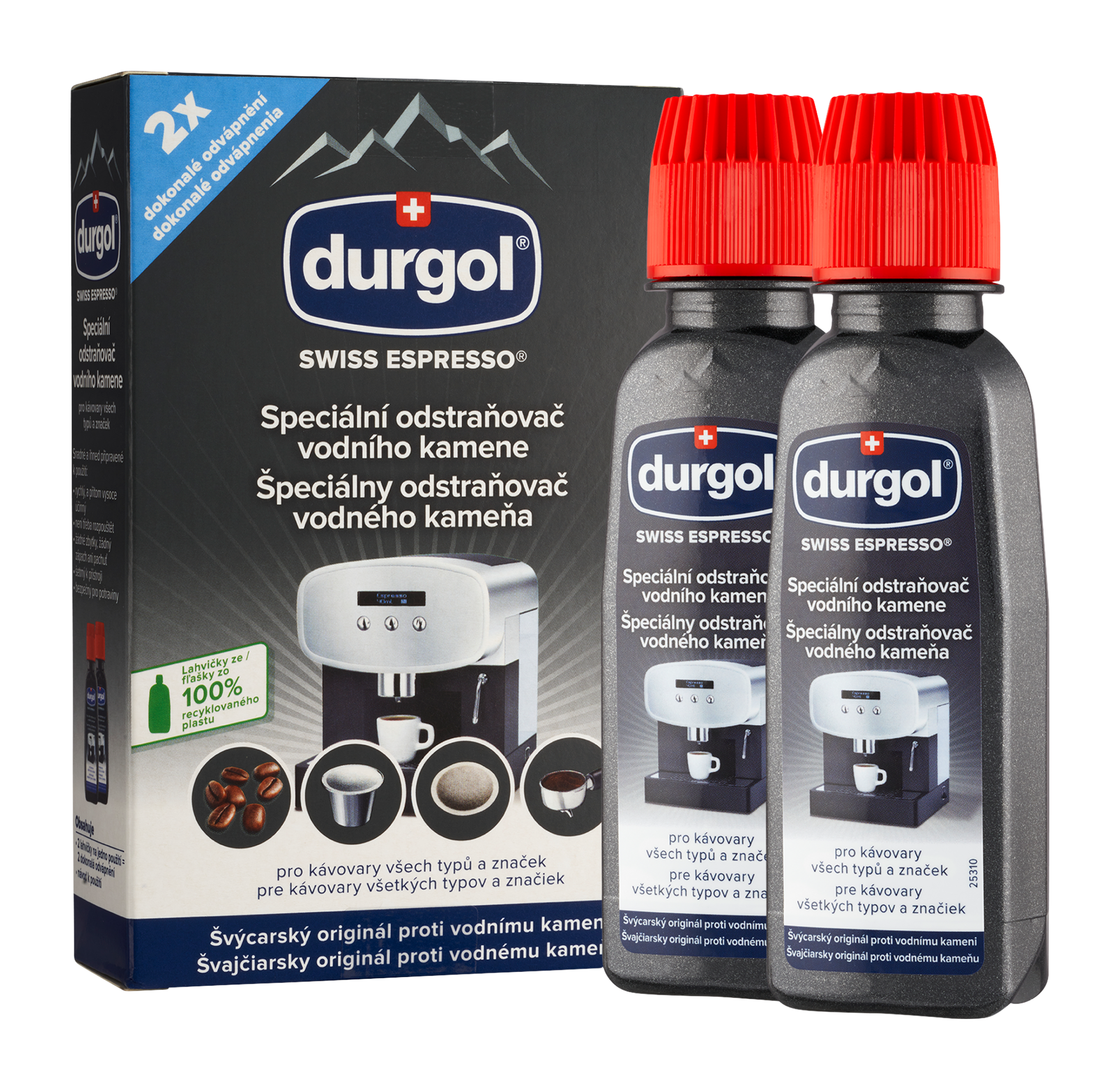 Durgol Swiss Espresso® je speciální odstraňovač vodního kamene vhodný pro všechny standardní kávovary všech typů a značek. Funguje stejně dobře na plně automatických strojích, strojích na kapsle a pody i na poloautomatických strojích. Durgol Swiss Espresso je vysoce účinný, bezpečný a snadno se používá. Pro snadné, rychlé a důkladné odvápnění. Není třeba dodatečně odmáčet. Jedinečné antikorozní složení zajišťuje optimální ochranu materiálů. Pravidelné používání zajišťuje nejlepší kvalitu kávy a prodlužuje životnost vašeho kávovaru. Snadné a ihned připravené k použití: - rychlý, a přitom vysoce účinný - není třeba rozpouštět - žádné zbytky, žádný zápach ani pachuť - šetrný k přístroji - bezpečný pro potraviny.