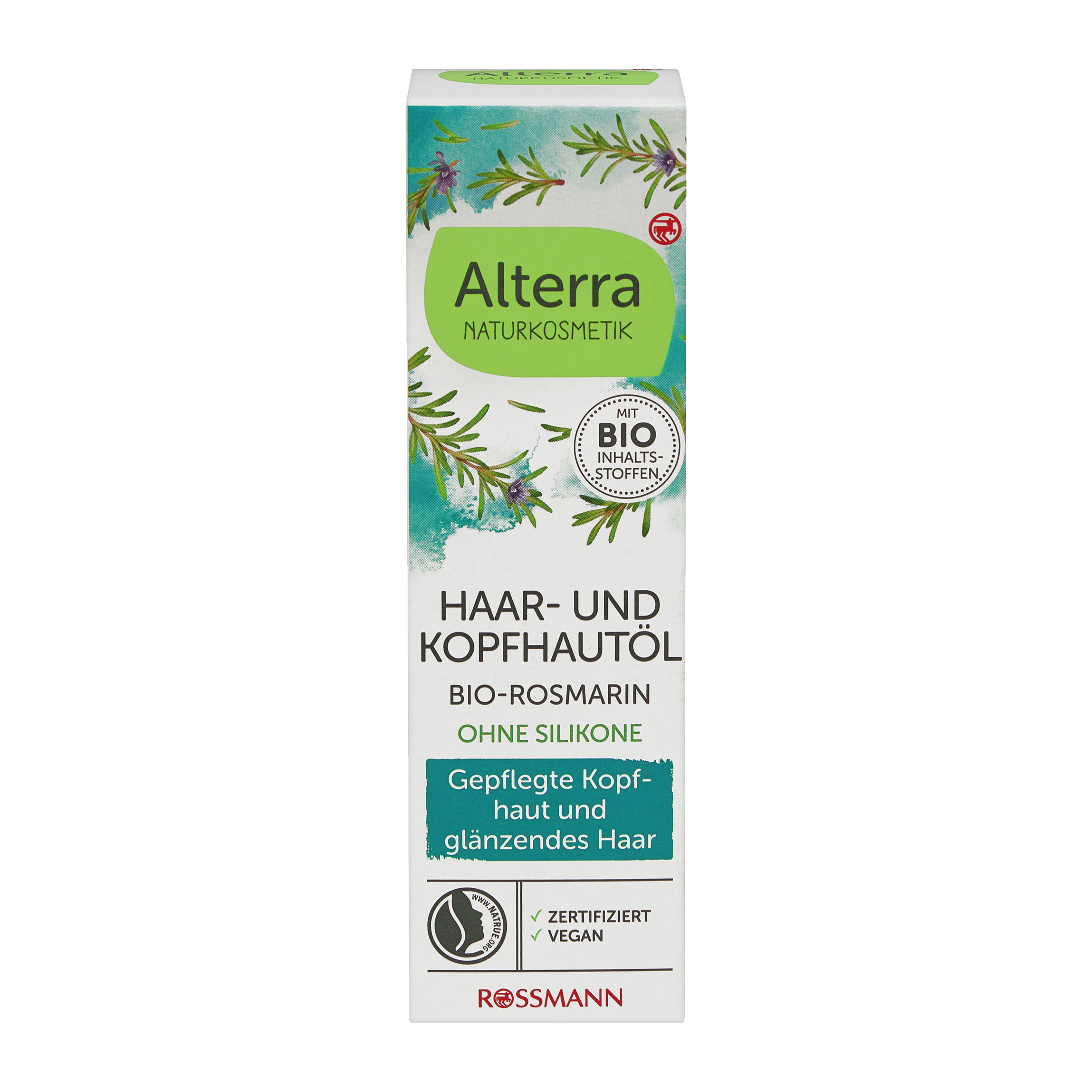 Alterra organický rozmarýnový olej na vlasy a pokožku hlavy se svěží vůní vyživuje pokožku hlavy. Složení s organickým rozmarýnovým esenciálním olejem dodává vlasům a pokožce hlavy novou vitalitu. Pečuje také o lámavé a poškozené vlasy a díky složení proti krepatění jim dodává lesk a pružnost. Organický avokádový olej a organický olivový olej poskytují vlasům a vlasové pokožce další péči, aniž by je zatěžovaly. 100% důvěra. Bez syntetických barviv a vůní. bez silikonů a minerálních olejových produktů. Rostlinné suroviny pocházejí z kontrolovaného ekologického pěstování a divokých sběrů, kde je to možné. Snášenlivost s pokožkou dermatologicky potvrzena. Vyrobeno v továrně se 100% ekologickou elektřinou. Veganské.