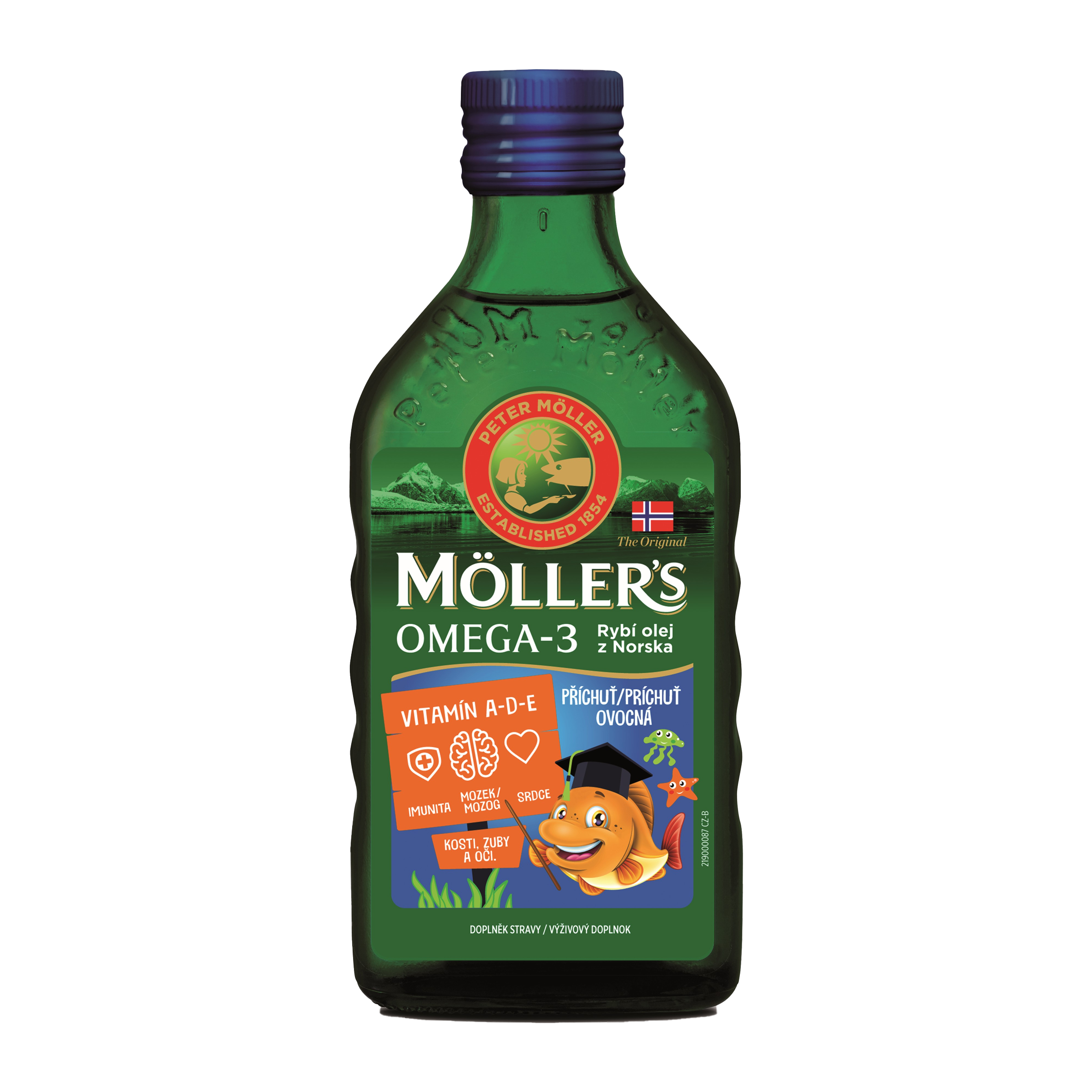 Möller’s Omega-3 je prémiový rybí olej z tresčích jater lovených v chladných a čistých vodách norských Lofot. Díky jemné ovocné chuti je vhodný i pro děti nebo pro ty, kteří běžně kvůli chuti rybí olej nevyhledávají.