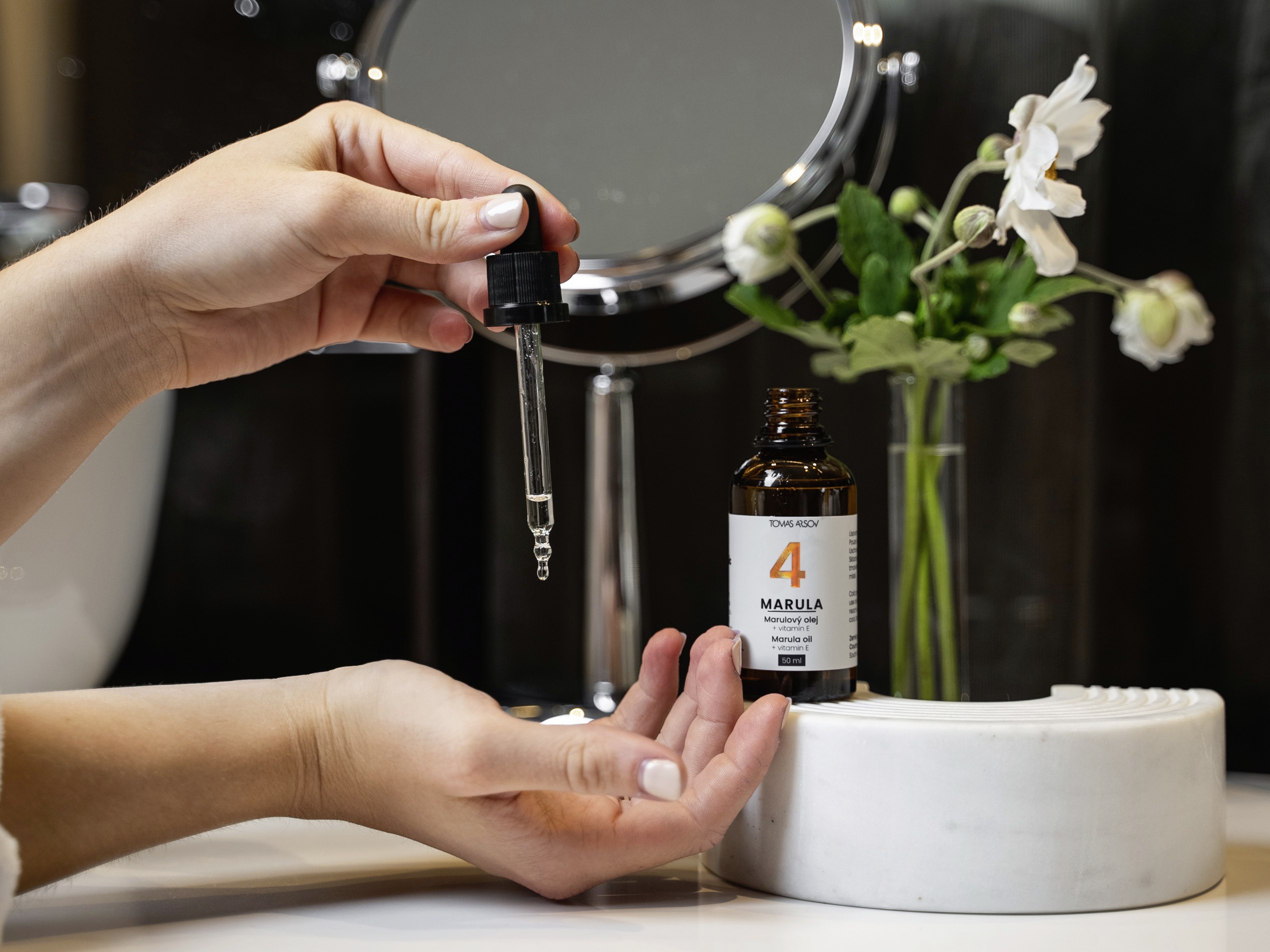 Elixír mládí v podobě marulového oleje revitalizuje a regeneruje poškozené vlasy a vlasovou pokožku. Vyživuje vlasy zevnitř, opravuje vysušené konečky a zabraňuje nevzhlednému krepatění. Marulový olej je 100% čistý, organický a za studena lisovaný, obohacený o vitamin E. Díky své struktuře vlasy nezatežuje a nemastí.