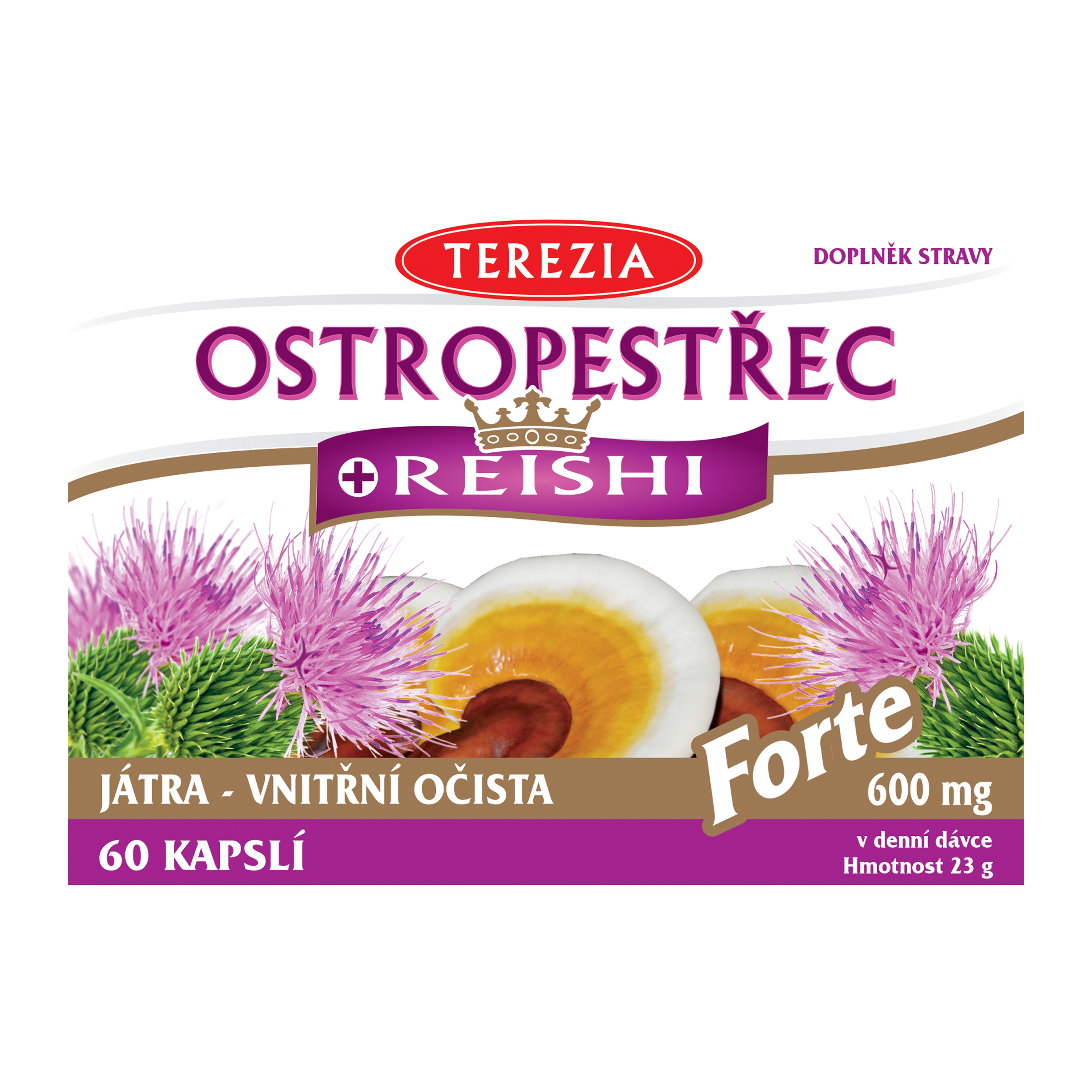 TEREZIA Ostropestřec + Reishi FORTE pomáhá očistě jater a jejich regeneraci. V kombinaci s reishi a černým bezem pro podporu obranyschopnosti organizmu. Bez příměsí a konzervačních látek.