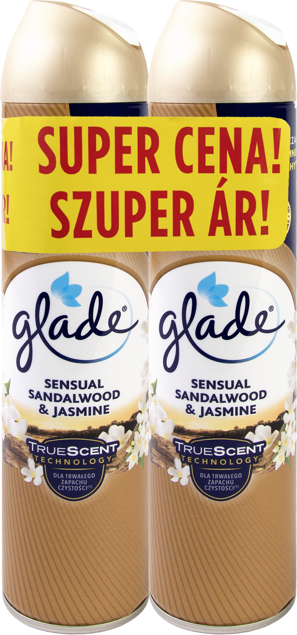 Glade osvěžovač vzduchu Sensual Salndalwood & Jasmine 300 ml, zachyťte esenci pobytu v luxusních lázních, kde se tóny bergamotu a jasmínu spojují s teplou ambrou a santalovým dřevem. Nechte se hýčkat.