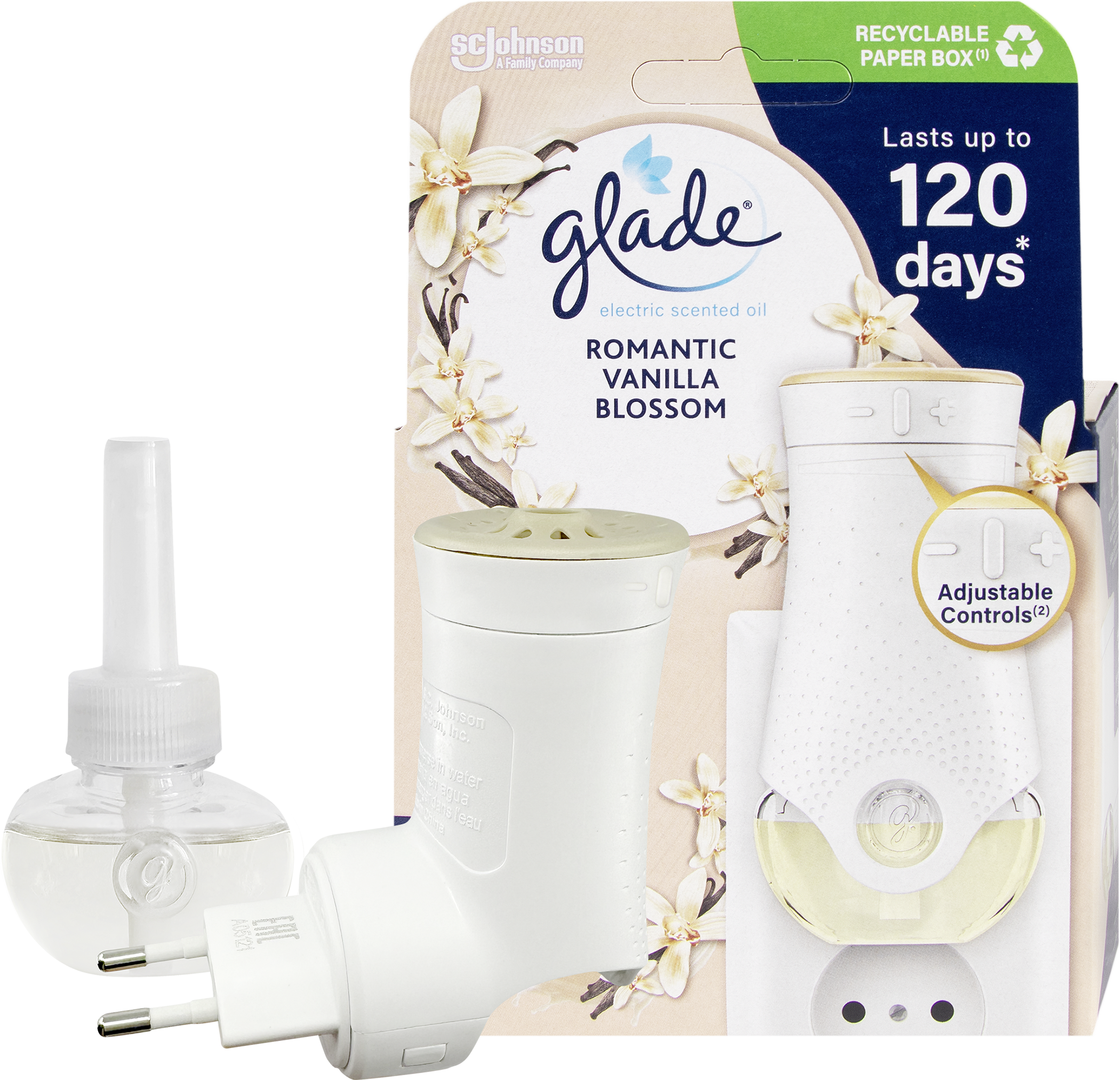 Glade Electric nabízí jednoduché ovládání a skutečnou vůni. Naplňte svůj domov příjemnou vůní s Glade elektrickým osvěžovačem vzduchu a dopřejte si jedinečný vonný zážitek každý den. Strojek s vyměnitelnou náplní stačí vložit do zásuvky a zvolit požadovanou intenzitu vůně. Intenzitu vůně můžete nastavit pro všechny velikosti místností ve vašem domě/bytě. Během chvilky se váš interiér promění na místo plné harmonie, ze kterého nebudete chtít odejít. Protože doma je tam, kde se cítíte dobře. Nový recyklovatelný papírový obal a systém náhradních náplní šetří životní prostředí, delší výdrž vůní i vaši peněženku.